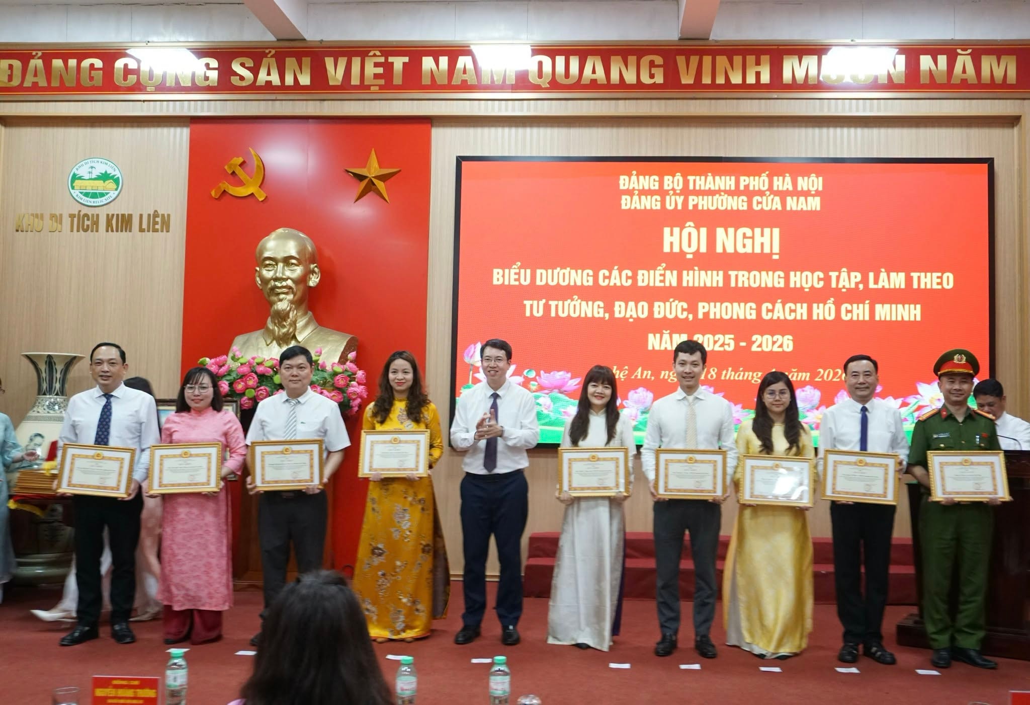 Phường Cửa Nam khen thưởng các tập thể, cá nhân tiêu biểu trong học tập và làm theo tư tưởng, đạo đức, phong cách Hồ Chí Minh năm 2025 - 2026. Ảnh: CN