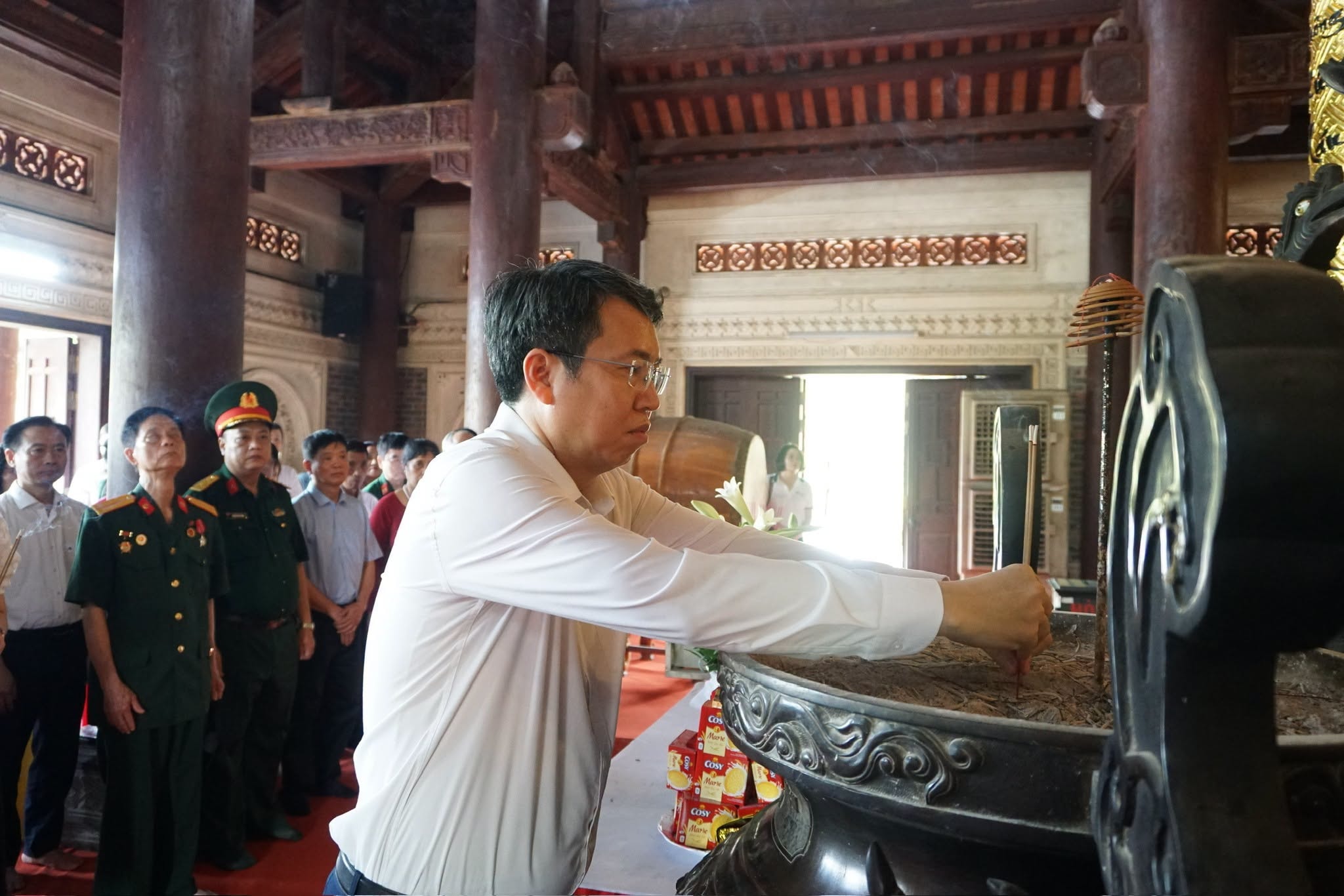 Bí thư Đảng ủy, Chủ tịch HĐND phường Nguyễn Hoàng Trường dâng hương. Ảnh: CN