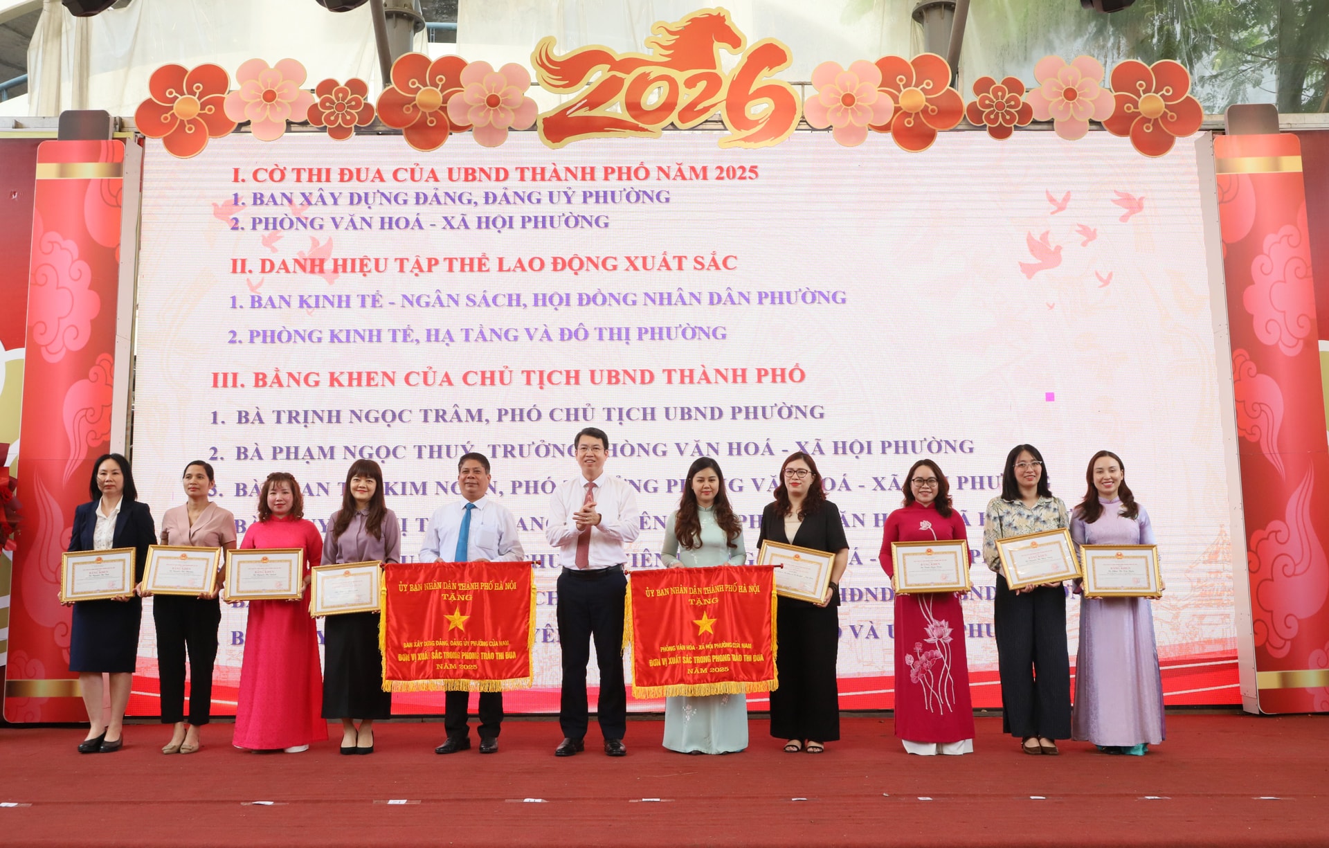 Đảng bộ, chính quyền và nhân dân phường Cửa Nam nhận "Cờ đơn vị xuất sắc trong phong trào thi đua" năm 2025. Ảnh: PV