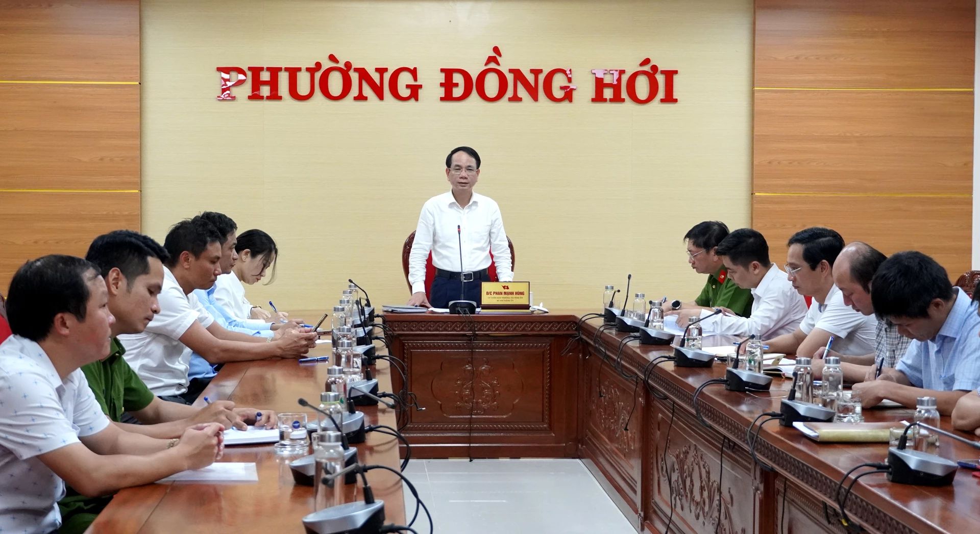Đồng chí Phan Mạnh Hùng, Bí thư Đảng ủy phường Đồng Hới chủ trì buổi làm việc với các ngành, đơn vị trên địa bàn - Ảnh: H.Tr
