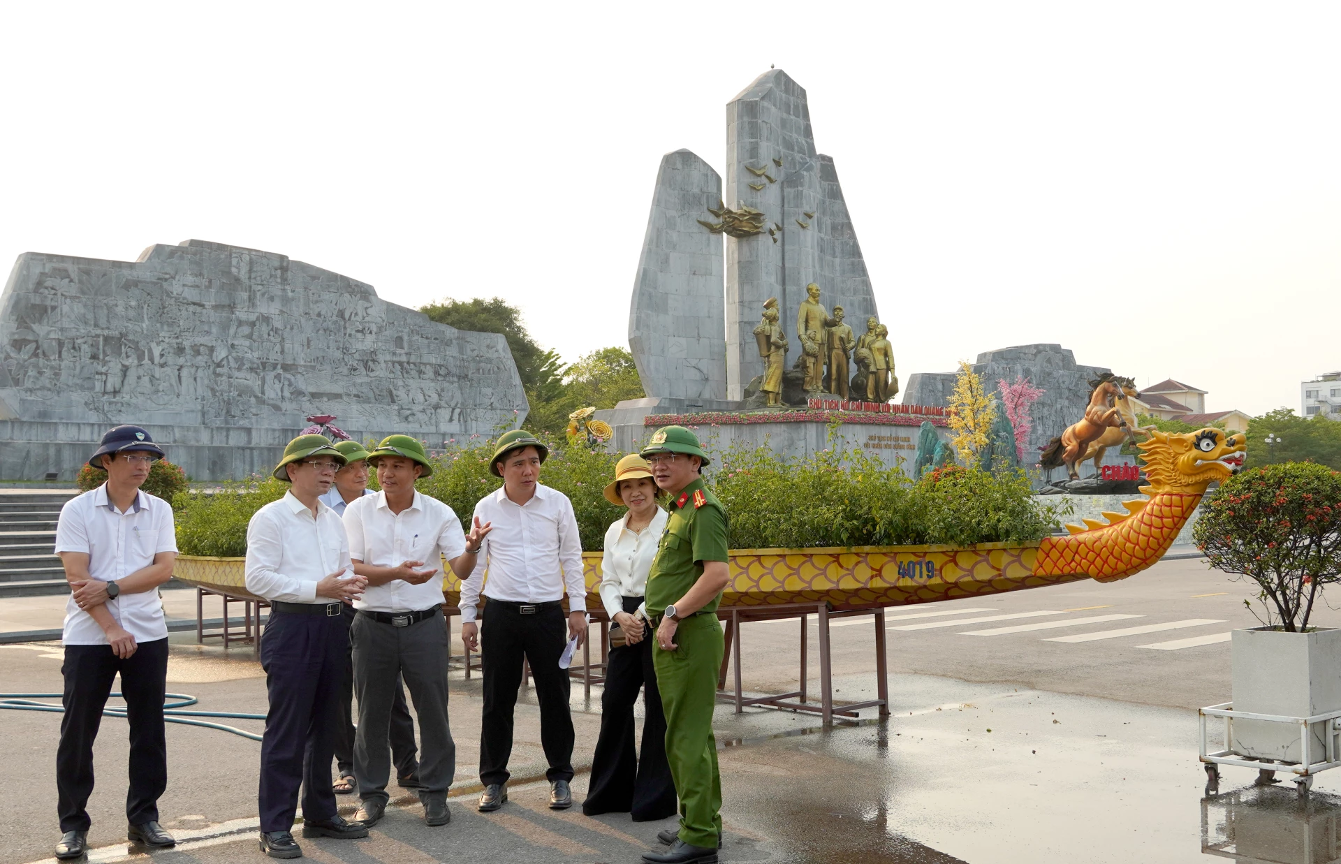 Đồng chí Phan Mạnh Hùng, Bí thư Đảng ủy phường Đồng Hới và đoàn công tác kiểm tra tại Quảng trường Hồ Chí Minh - Ảnh: H.Tr
