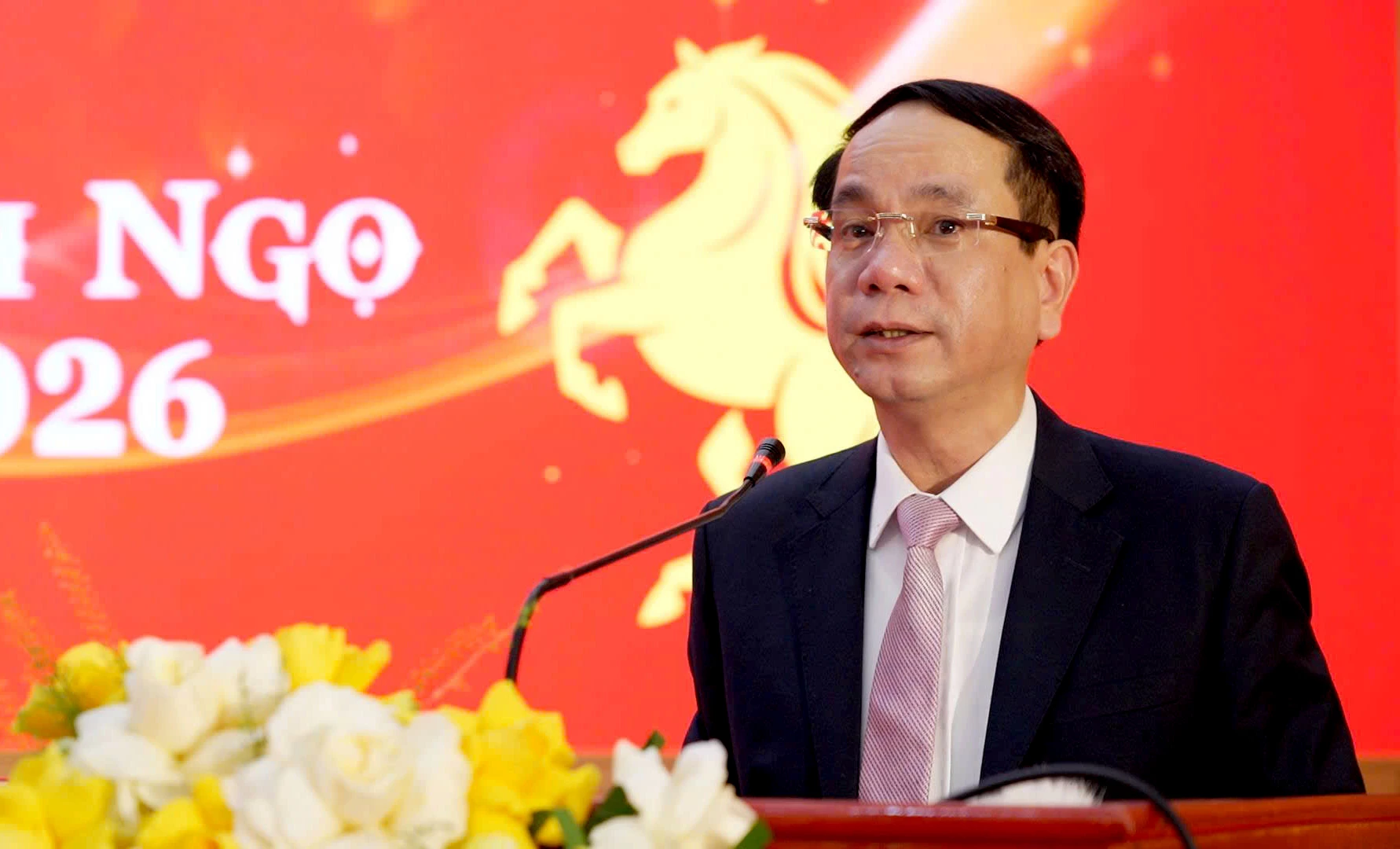 Đồng chí Bí thư Đảng ủy phường Đồng Hới Phan Mạnh Hùng phát biểu chúc mừng năm mới đến các đại biểu và gia đình - Ảnh: H.Tr