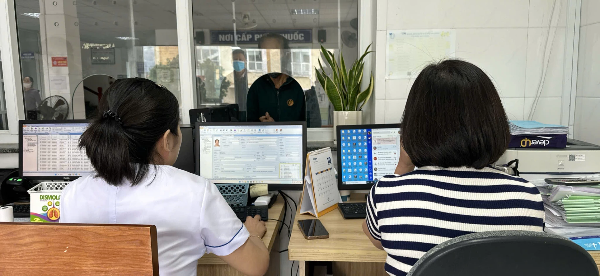 Cán bộ Bệnh viện đa khoa khu vực Đồng Hới hướng dẫn người dân đăng ký khám chữa bệnh sử dụng Thẻ Căn cước - Ảnh: H.Tr