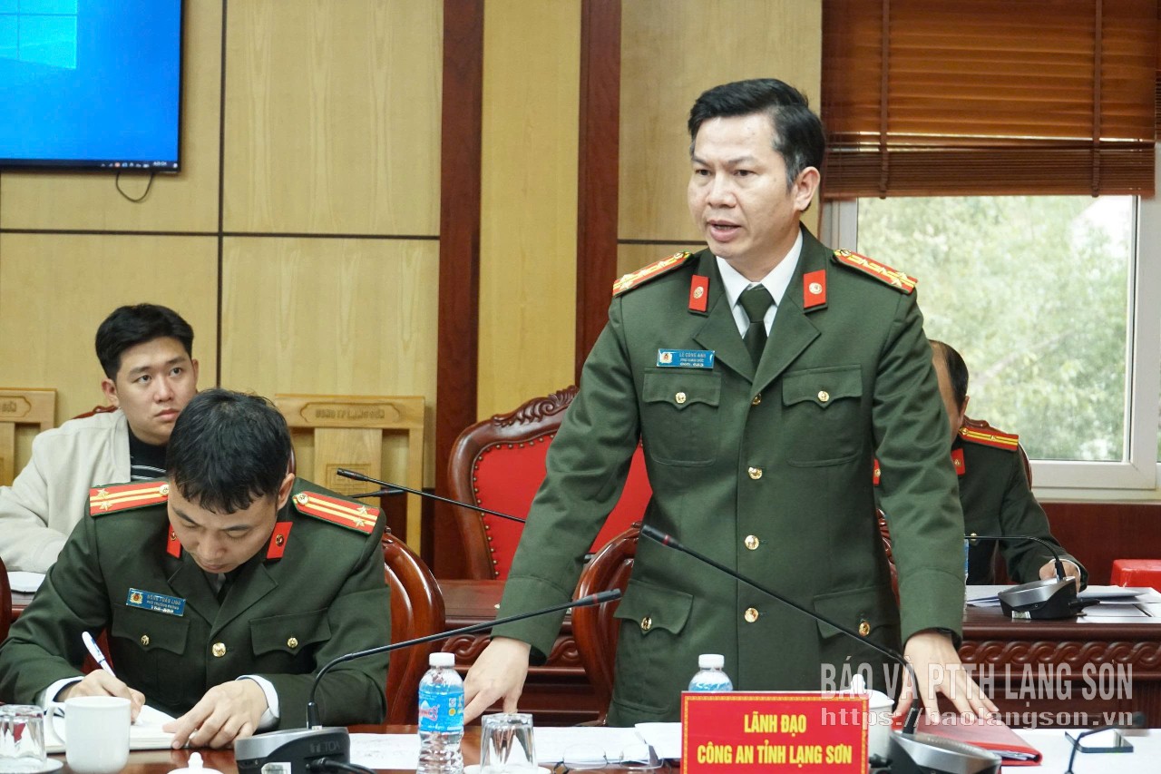 Lãnh đạo Công an tỉnh nêu ý kiến tại cuộc họp