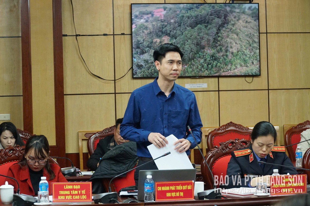 Lãnh đạo Chi nhánh Phát triển quỹ đất khu vực đô thị phát biểu tại cuộc họp