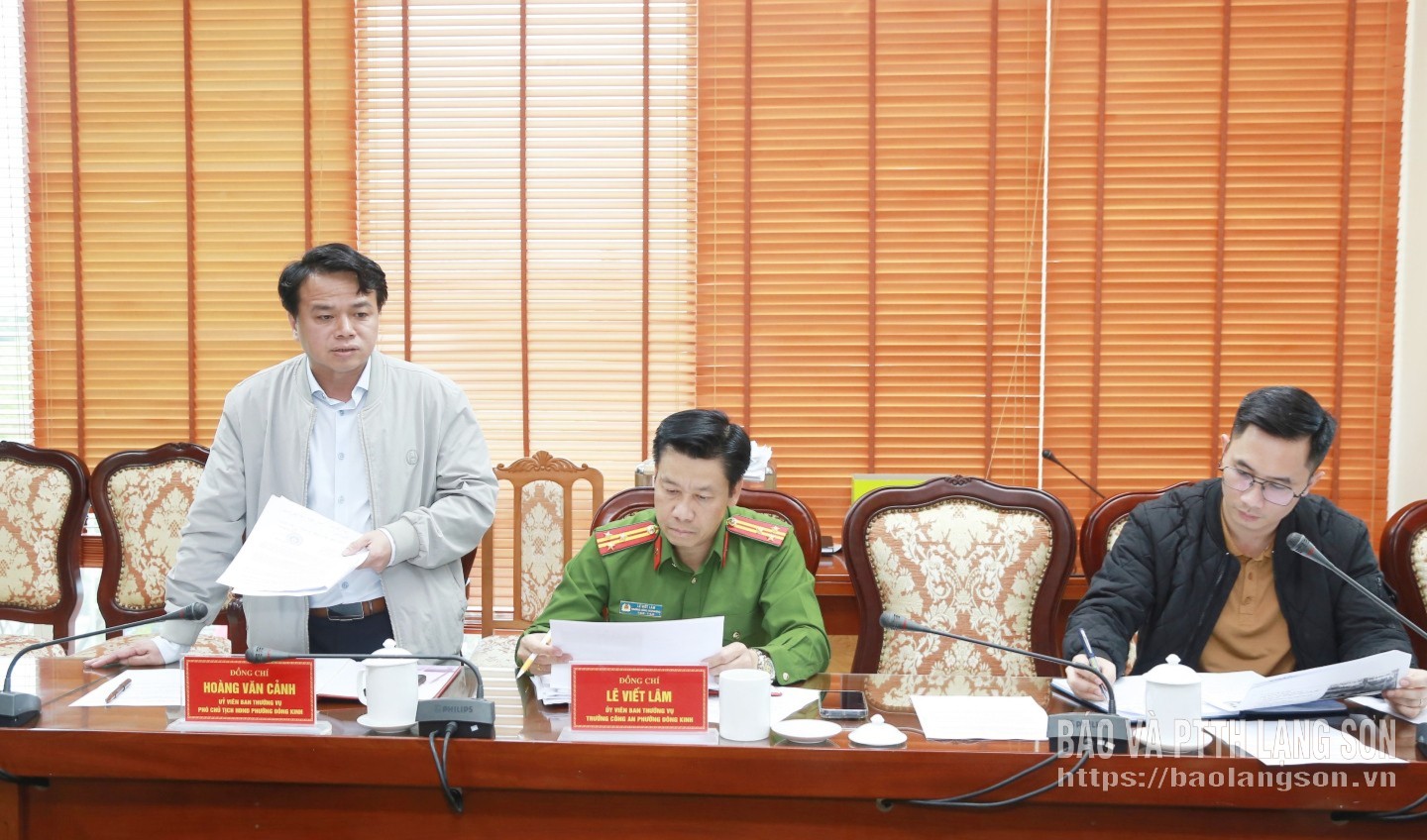 Đại diện Phòng Kinh tế, hạ tầng và đô thị, UBND phường Đông Kinh báo cáo tiến độ triển khai xóa nhà tạm, nhà dột nát trên địa bàn