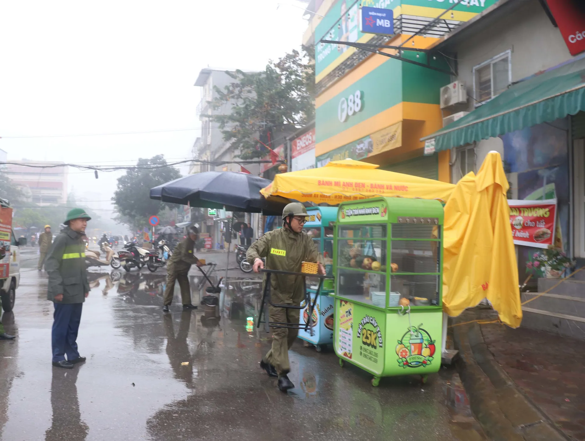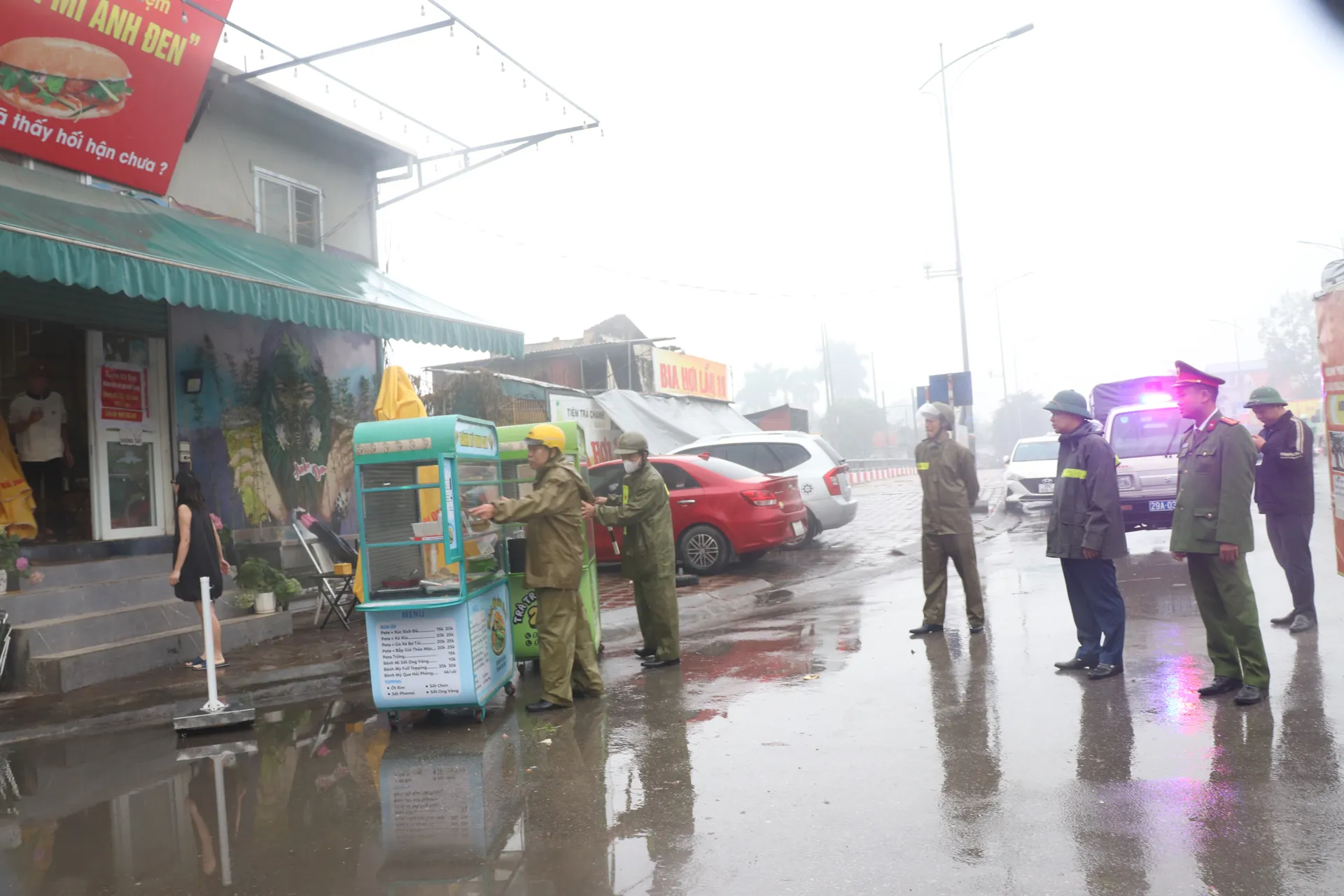 Cùng đó, xe bán hàng lưu động cà phê, nước ép trái cây, bánh mỳ; bình xăng di động chiếm vỉa hè để kinh doanh. Các hộ kinh doanh tạp hóa, quán bia, quán nước, rau củ quả,... lấn vỉa hè, lòng đường kinh doanh bày bàn ghế, tủ hàng, sạp hàng, bếp nấu,...