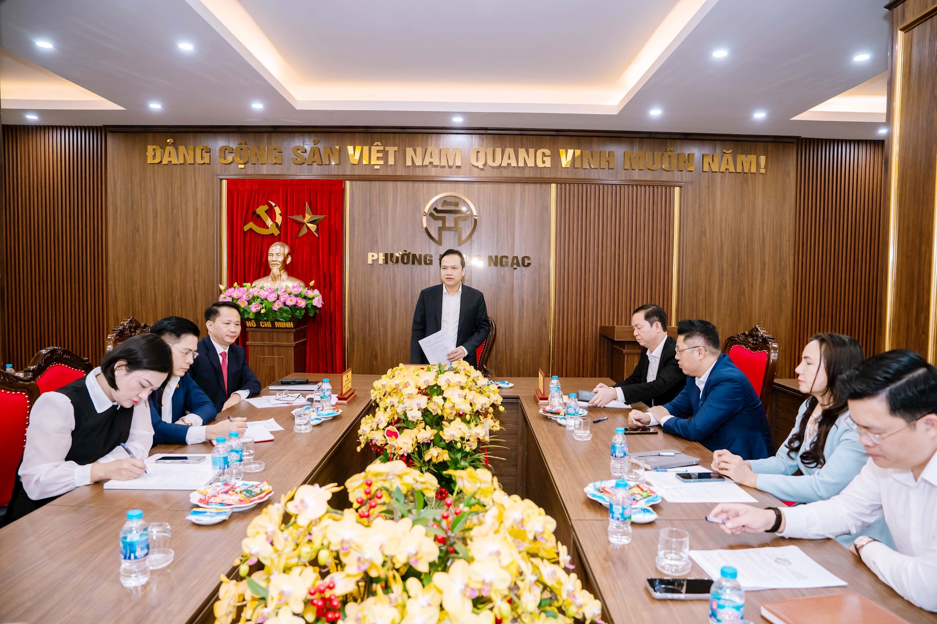 Bí thư Đảng ủy, Chủ tịch HĐND phường Đông Ngạc Ngô Văn Nam vừa chủ trì Hội nghị Ban Thường vụ Đảng ủy phường mở rộng để nghe báo cáo tình hình, kết quả thực hiện công tác GPMB Dự án xây dựng đường Tây Thăng Long, đoạn từ đường Phạm Văn Đồng đến đường Văn Tiến Dũng và chỉ đạo, quán triệt, triển khai giao nhiệm vụ trọng tâm thời gian tới.