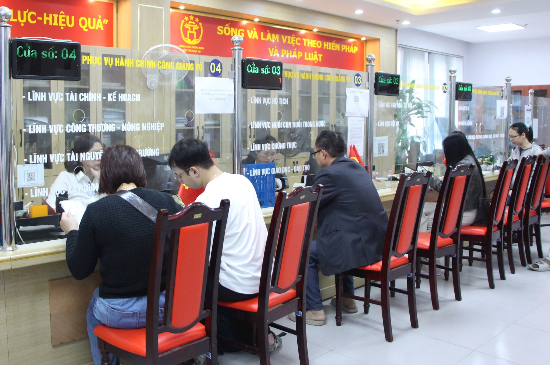 Người dân đến thực hiện thủ tục hành chính tại Trung tâm Phục vụ hành chính công thành phố Hà Nội - Chi nhánh số 3 - Điểm tiếp nhận phường Giảng Võ. Ảnh: MH