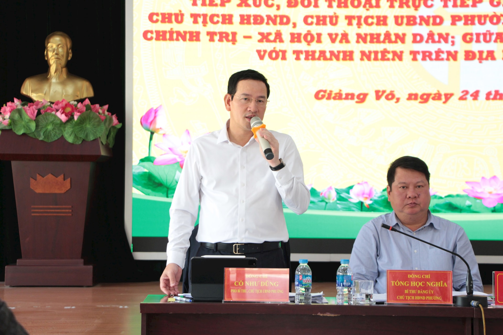 Chủ tịch UBND phường Giảng Võ Cồ Như Dũng đối thoại tại hội nghị. Ảnh: TT