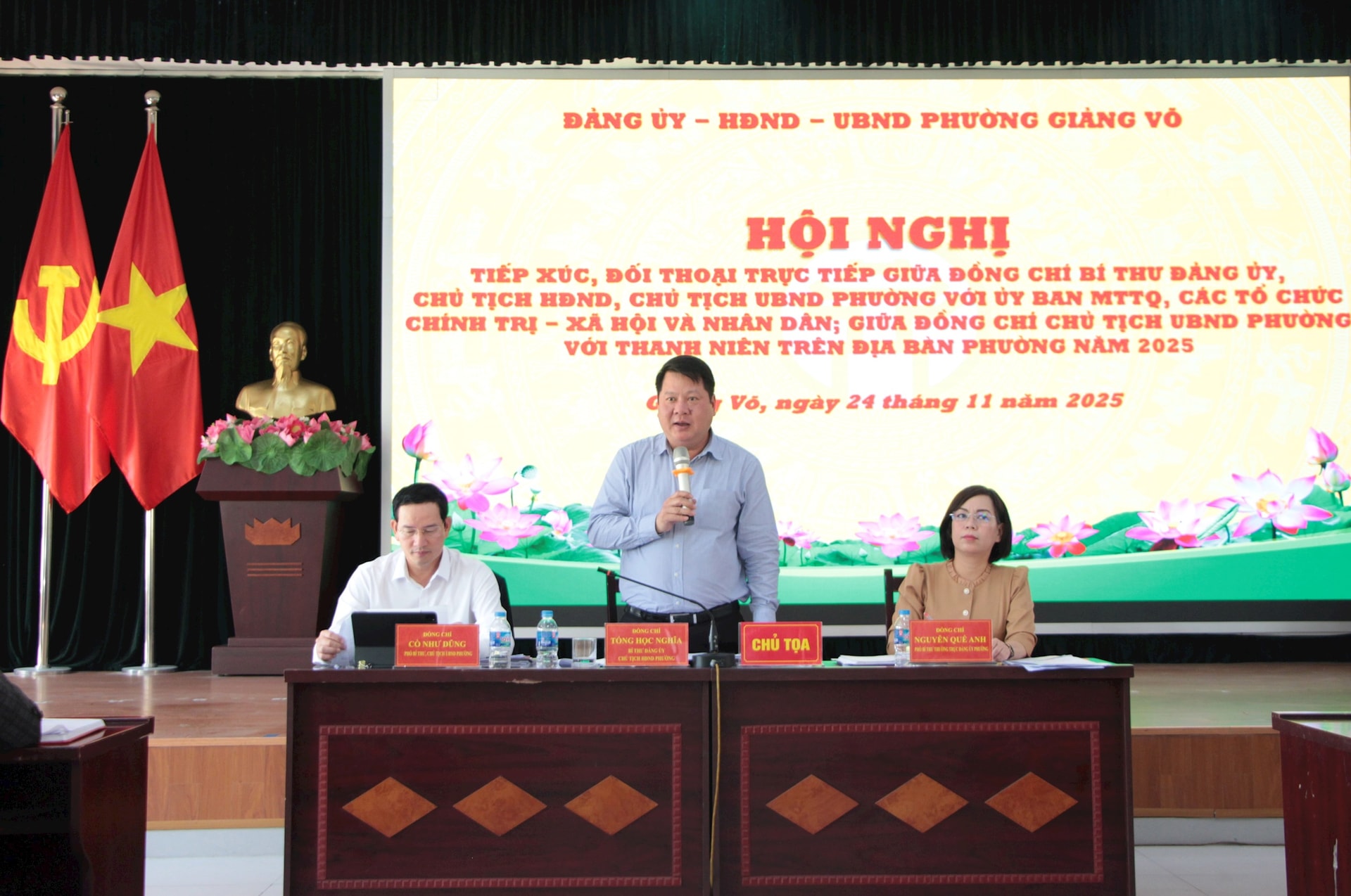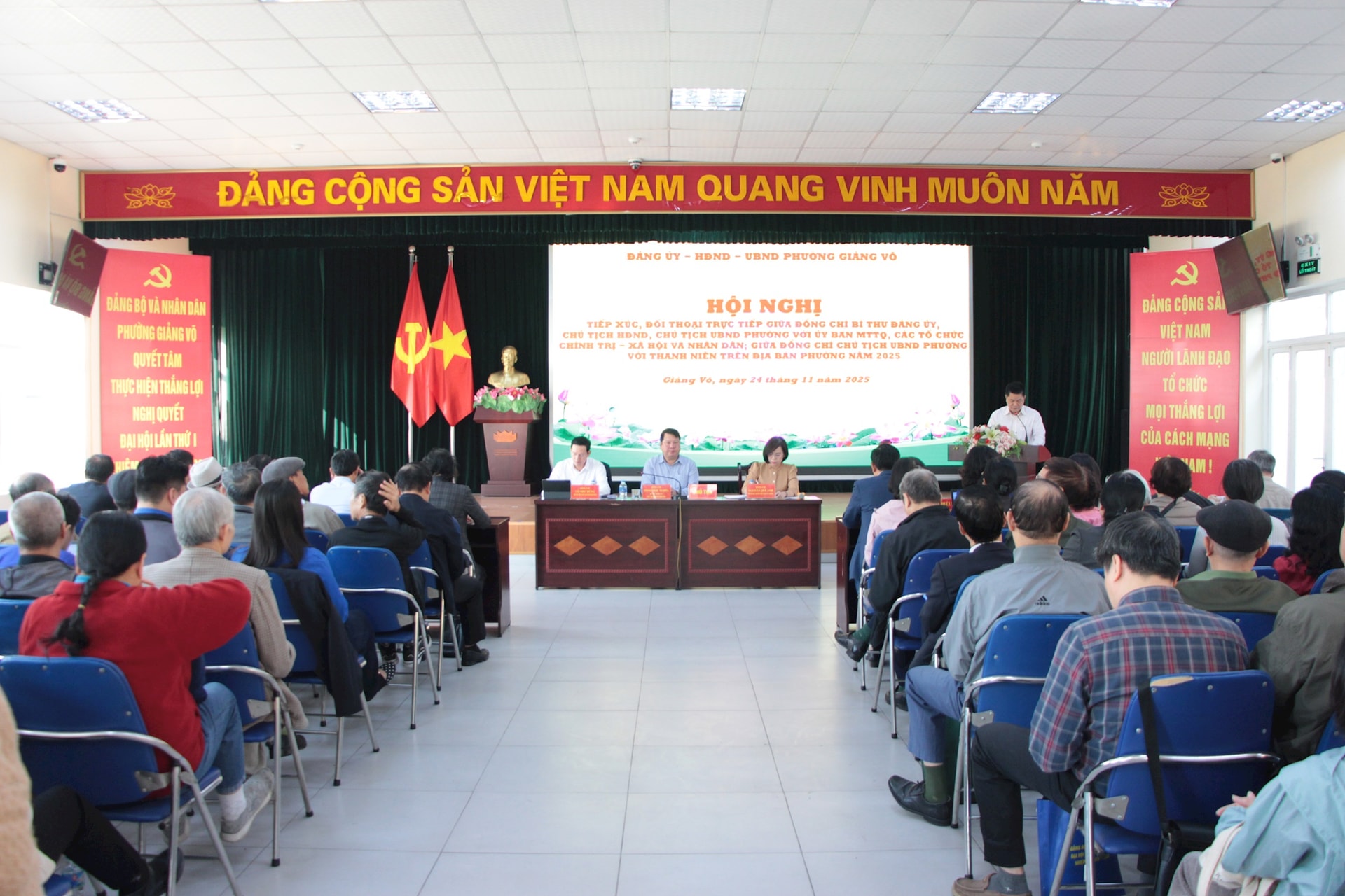Đây là khẳng định của Chủ tịch UBND phường Giảng Võ Cồ Như Dũng trong hội nghị tiếp xúc, đối thoại trực tiếp giữa người đứng đầu cấp ủy Đảng, chính quyền với Mặt trận Tổ quốc, các tổ chức chính trị - xã hội và nhân dân phường Giảng Võ; giữa Chủ tịch UBND phường với thanh niên, diễn ra sáng 24-11.