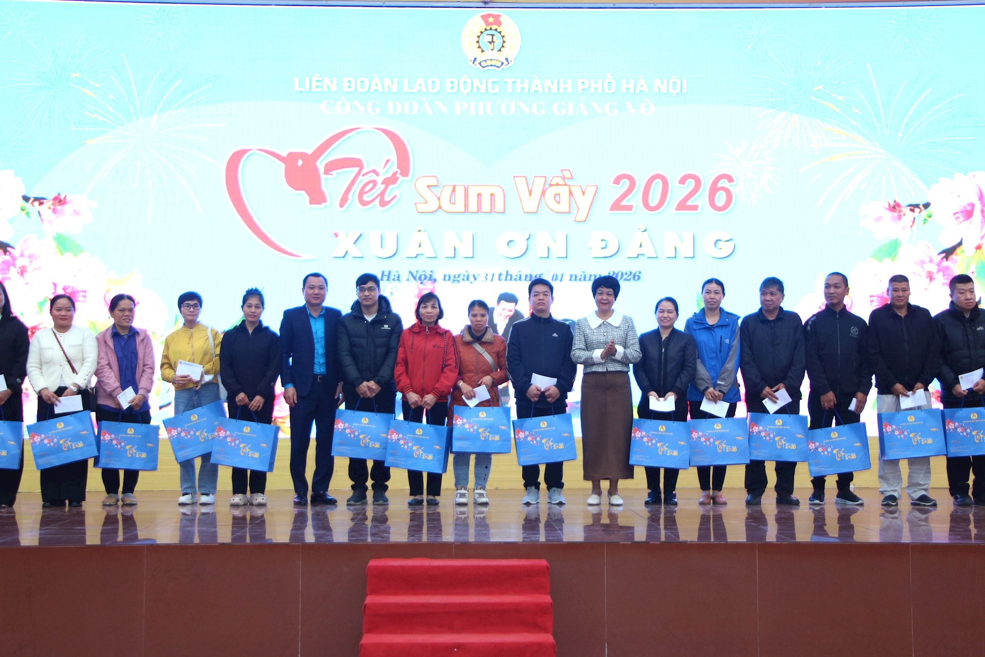 Tại chương trình “Tết sum vầy - Xuân ơn Đảng”, Ủy ban Mặt trận Tổ quốc Việt Nam phường Giảng Võ phối hợp cùng Công đoàn và các tổ chức chính trị - xã hội phường đã trao tặng 374 suất quà đến đối tượng là người yếu thế, đoàn viên công đoàn, trẻ em có hoàn cảnh khó khăn, với tổng số tiền gần 400 triệu đồng từ nguồn xã hội hóa.