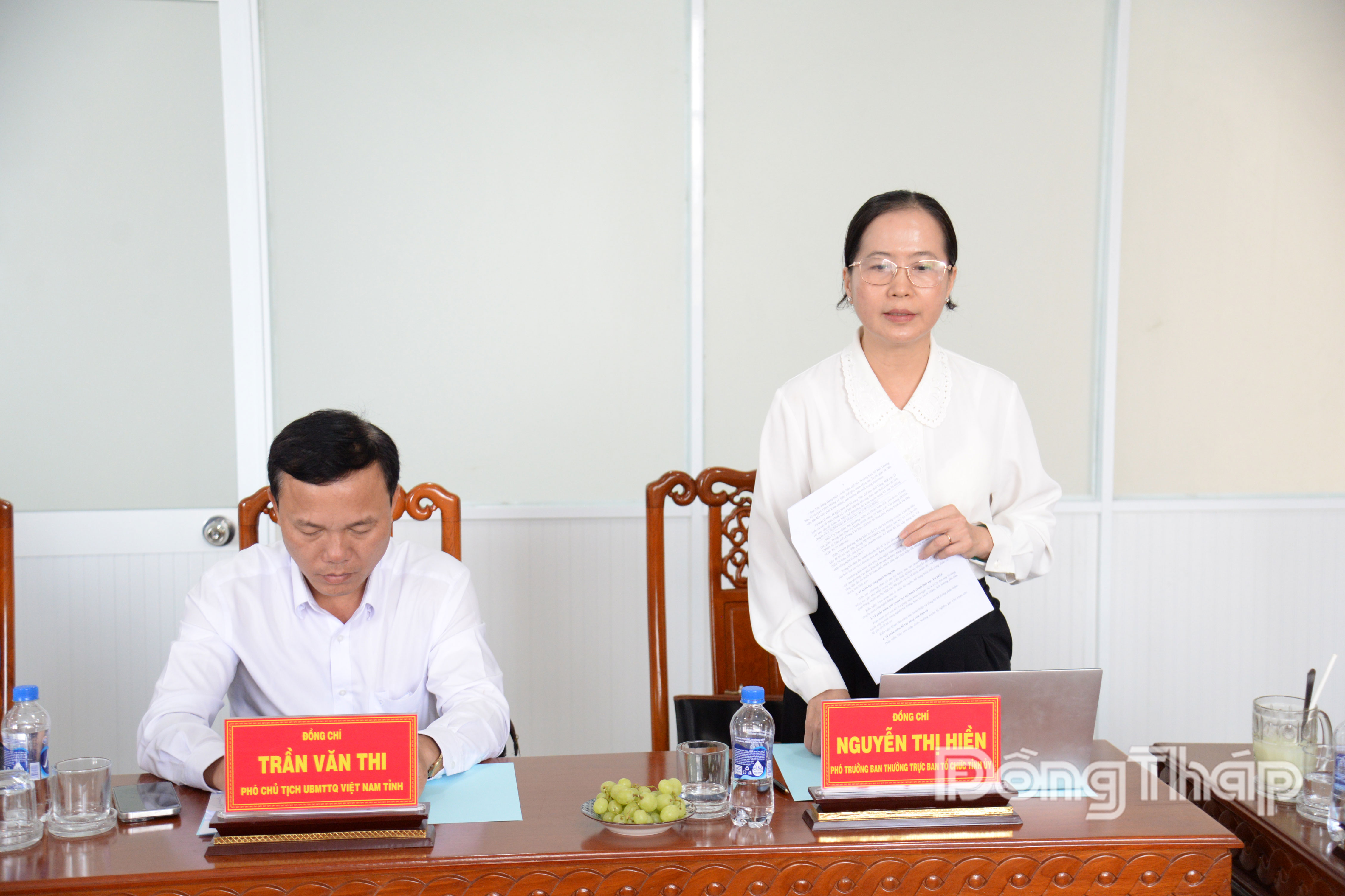 Phó trưởng Ban Thường trực Ban Tổ chức Tỉnh ủy Nguyễn Thị Hiền phát biểu tại buổi làm việc.