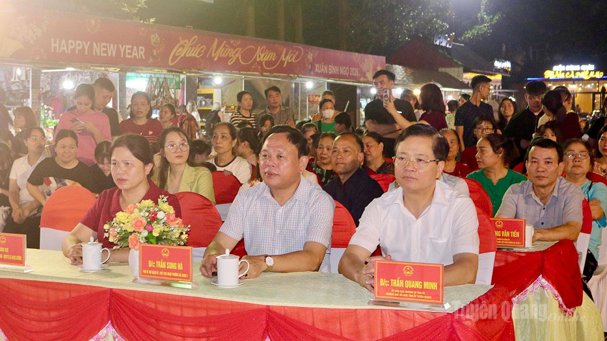 Ngay sau lễ khai mạc, các đại biểu và Nhân dân đã được thưởng thức nhiều tiết mục đặc sắc như trống hội, hát chèo, hát văn và trình diễn đi chân trần trên lửa. Không khí lễ hội rộn ràng, đậm đà bản sắc không chỉ thể hiện lòng tri ân mà còn góp phần gìn giữ, lan tỏa những giá trị văn hóa truyền thống tốt đẹp.