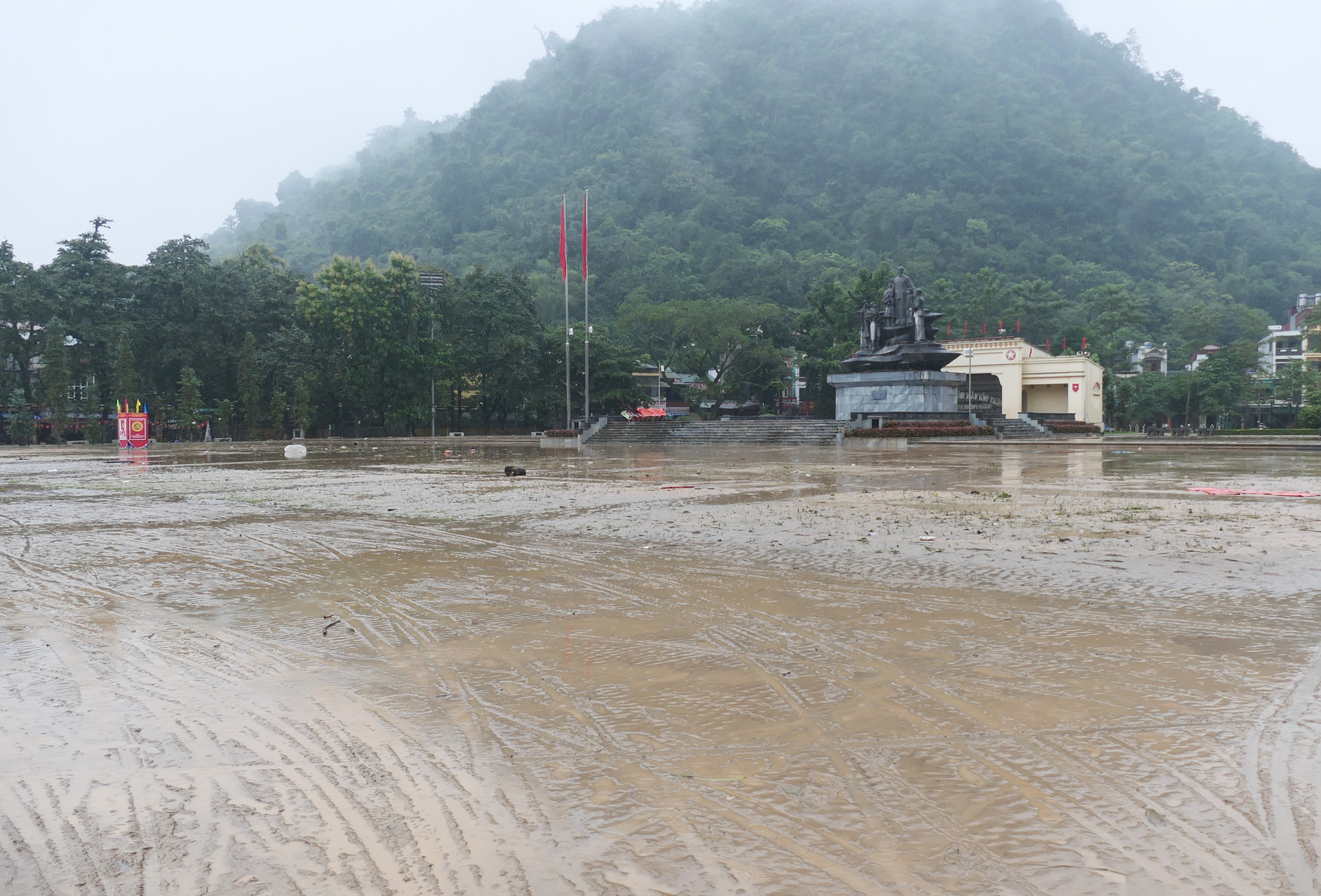 Quảng trường 26/3, phường Hà Giang 1 ngập bùn đất.