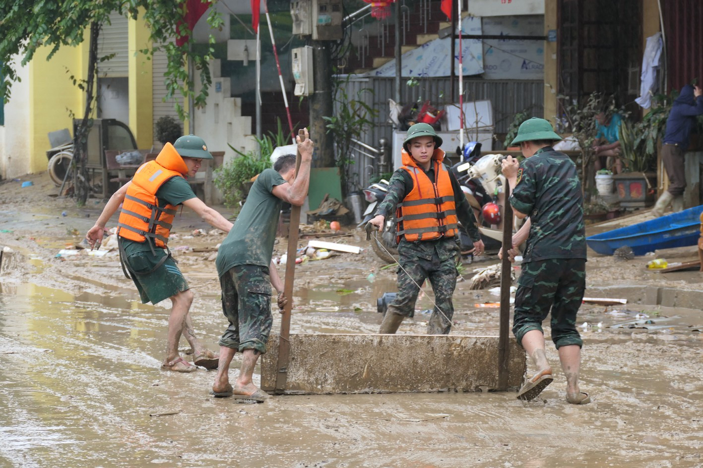 Lực lượng quân đội tham gia công tác khắc phục hậu quả tại phường Hà Giang 2.