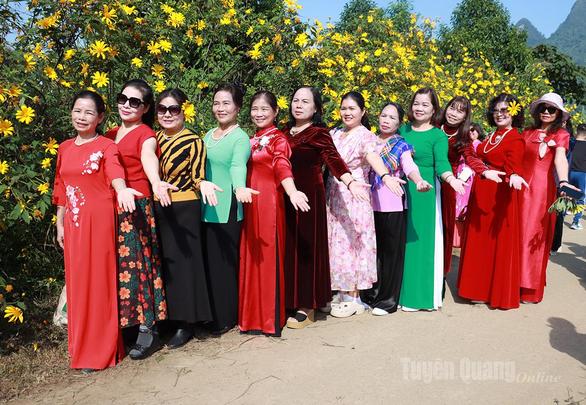 Điểm nhấn nổi bật tại lễ hội là du khách được trải nghiệm tuyến đường hoa Dã quỳ đang bung nở, khoe sắc dài hơn 5 km dọc hai bên đường khu vực Phong Quang, phường Hà Giang 2. Sắc vàng rực rỡ trải dài đã tạo nên không gian ấn tượng, thu hút đông đảo người dân và du khách đến chụp ảnh lưu niệm, khám phá cảnh quan tự nhiên.