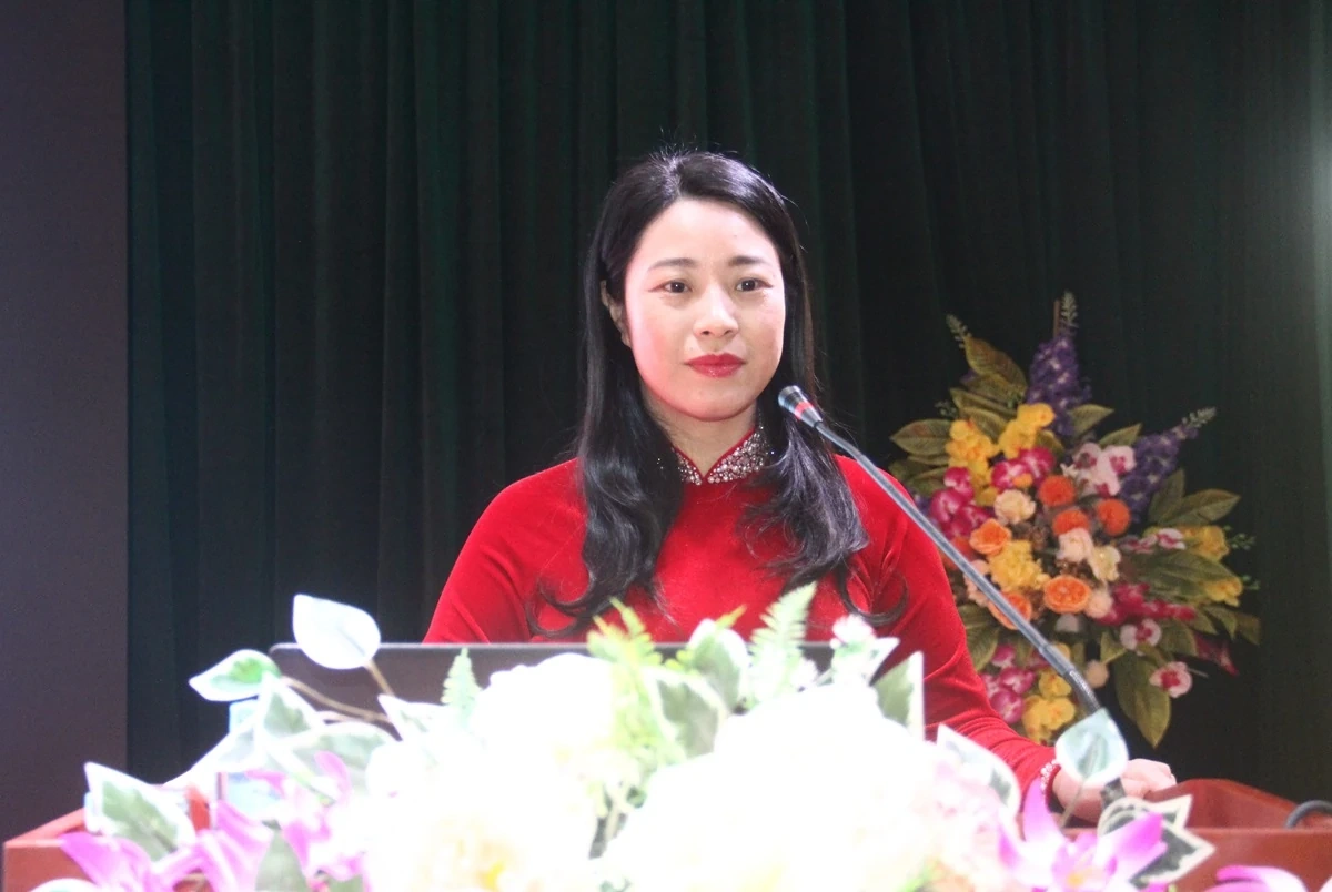 Đồng chí Thiều Thị Duyên, Giám đốc Trung tâm Chính trị phường Hạc Thành phát biểu tại lễ khai giảng.