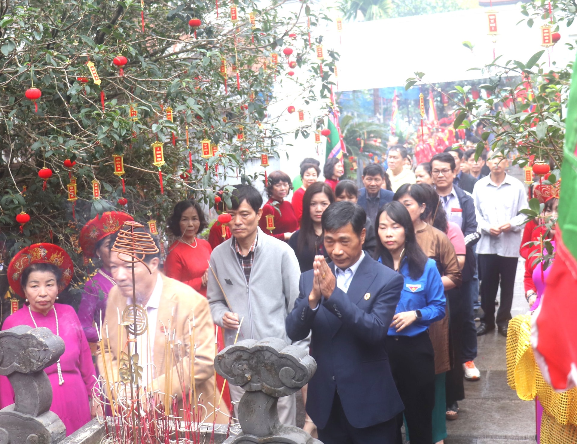 Các đại biểu, nhân dân địa phương, du khách thập phương dâng hương tại đền thờ Vua Đế Thích. Ảnh: PV