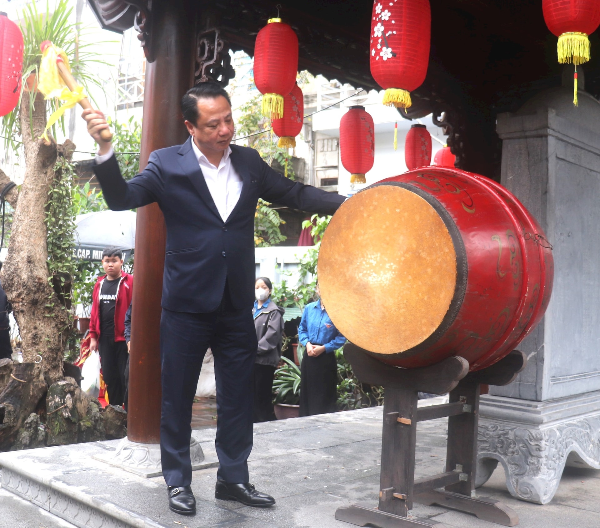 Chủ tịch UBND phường Hai Bà Trưng Nguyễn Mạnh Hùng đánh trống khai mạc Lễ hội. Ảnh: Linh Chi. Ảnh: PV