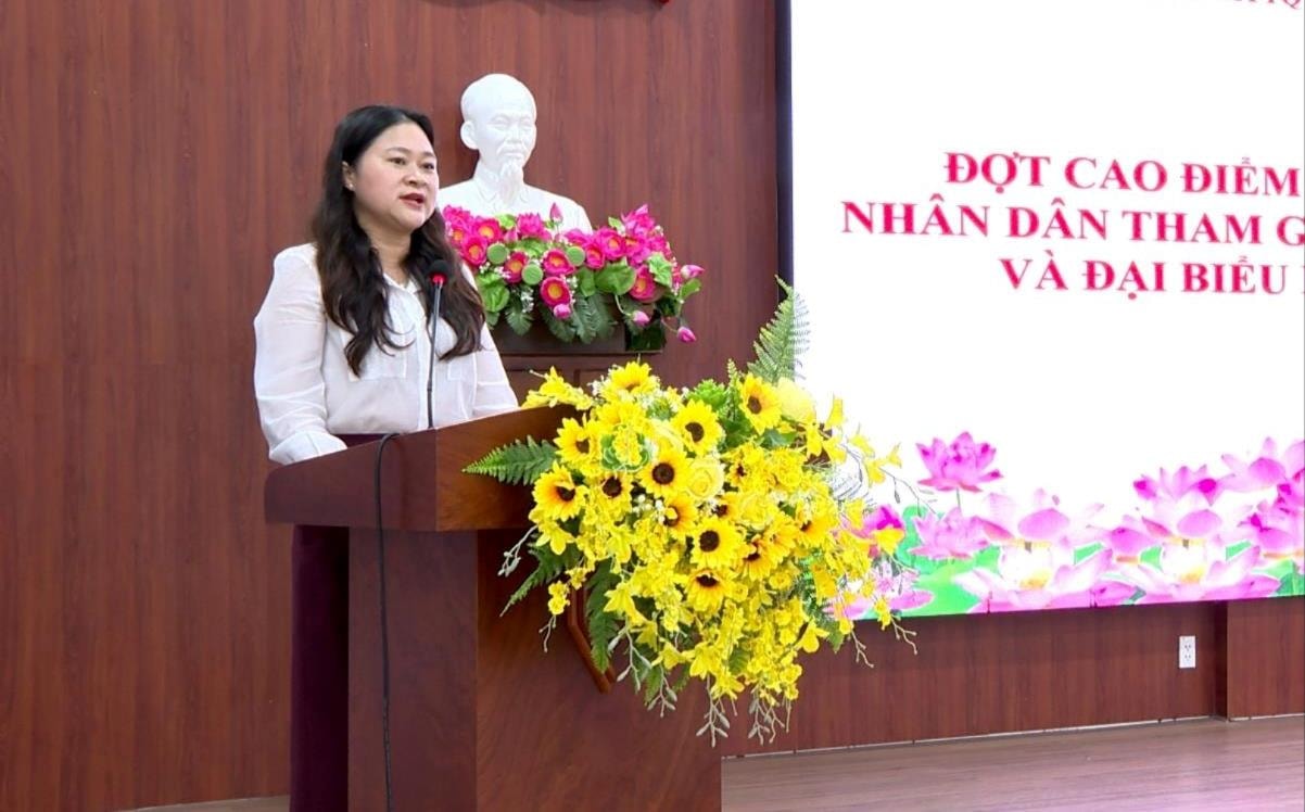 Bí thư Đảng ủy, Chủ tịch HĐND lâm thời phường Hải Châu Cao Thị Huyền Trân phát động đợt cao điểm tuyên truyền bầu cử. Ảnh: DIỄM HƯƠNG - TẤN YÊN