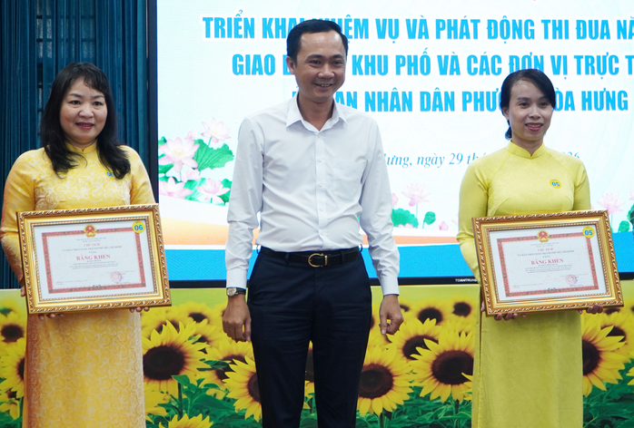 Lãnh đạo phường Hòa Hưng trao Bằng khen của UBND TPHCM cho các cá nhân, tập thể có thành tích xuất sắc trong công tác