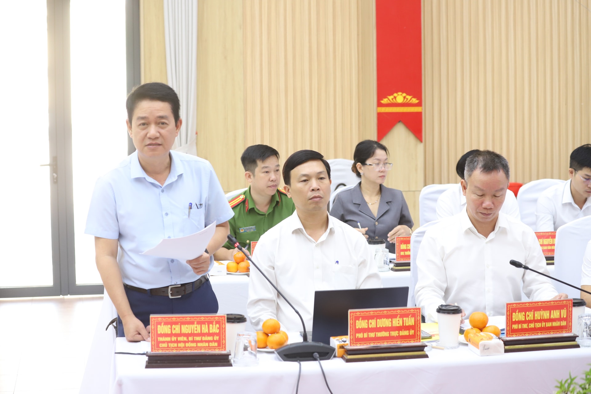 Bí thư Đảng ủy phường Hòa Khánh Nguyễn Hà Bắc báo cáo tại buổi làm việc. Ảnh: NGỌC PHÚ