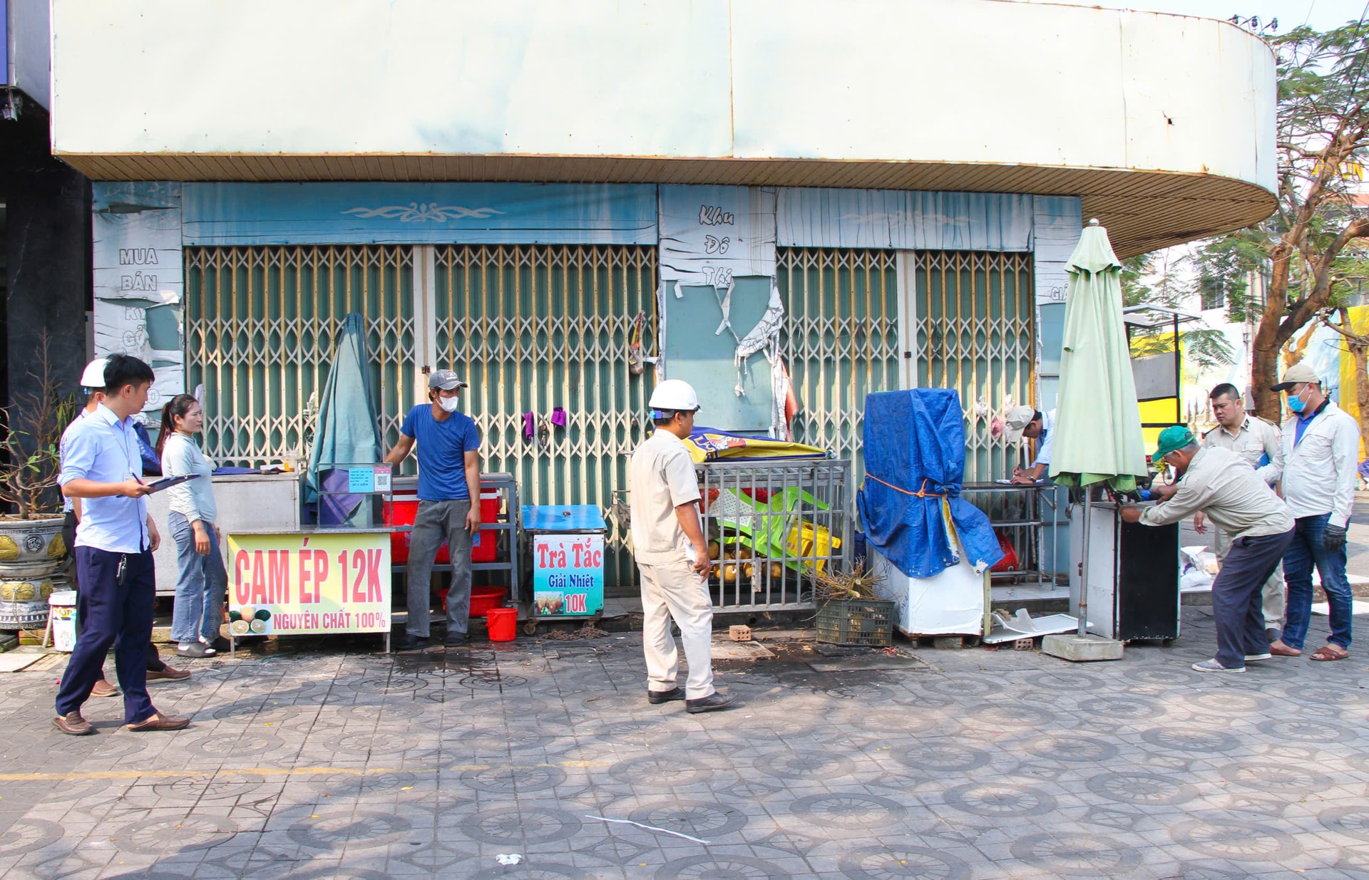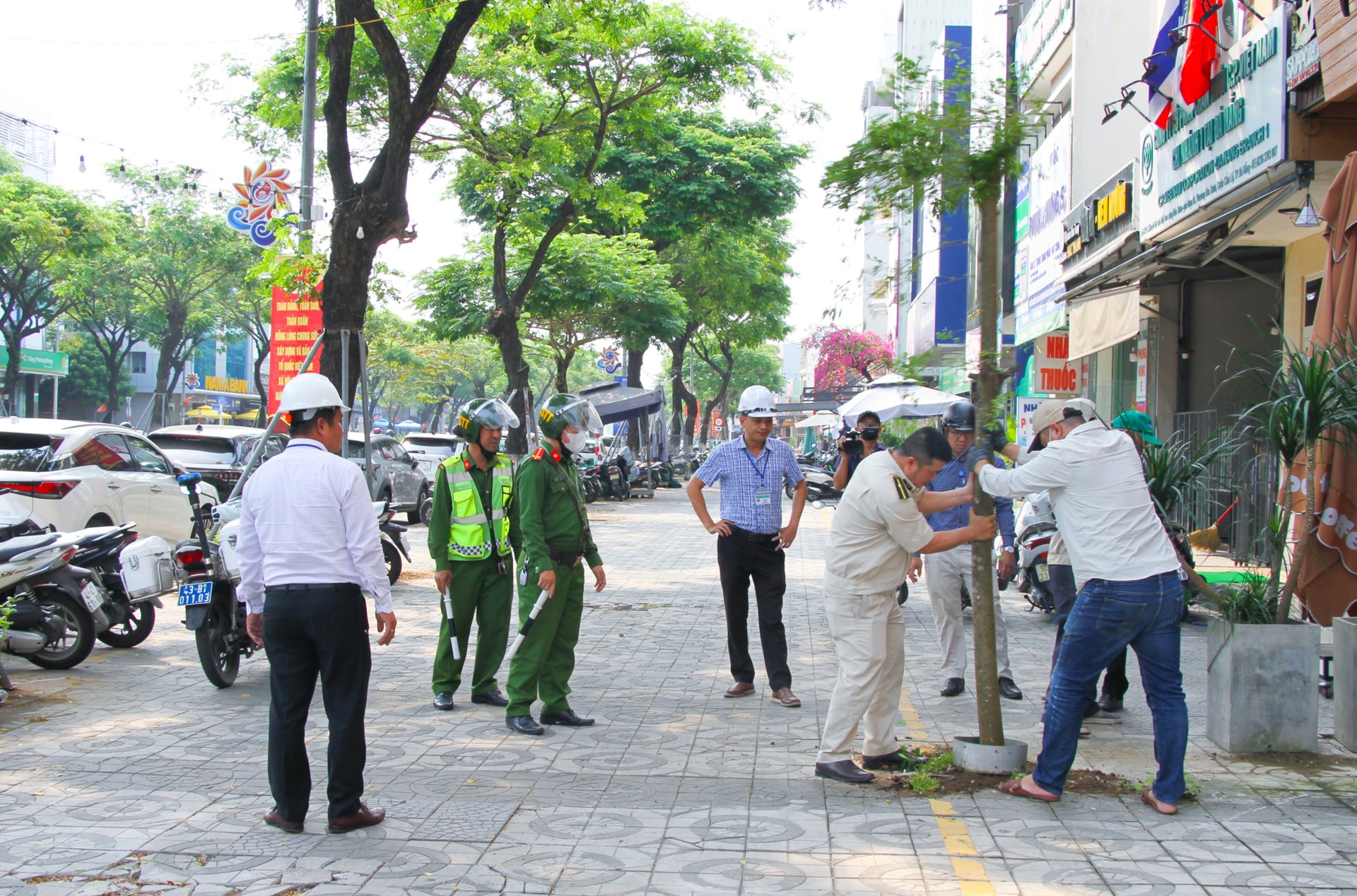 Lực lượng chức năng phường Hòa Xuân ra quân lập lại trật tự đô thị trên địa bàn. Ảnh: NGỌC QUỐC