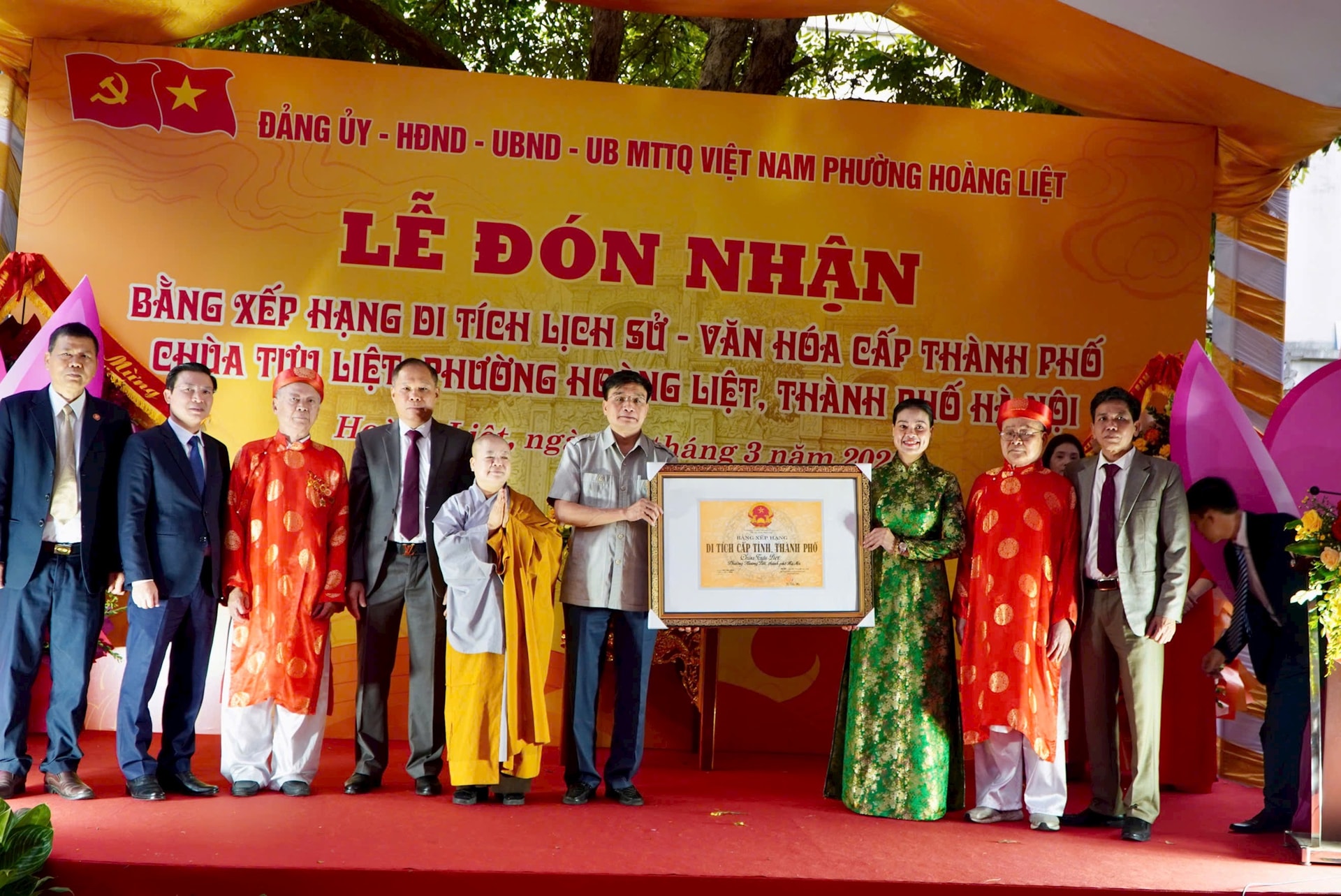 Nhân dịp này, Chủ tịch UBND phường Hoàng Liệt đã tặng giấy khen cho nhiều tập thể đã có thành tích trong việc đóng góp, hỗ trợ chùa Tựu Liệt được xếp hạng di tích lịch sử - văn hóa cấp Thành phố.