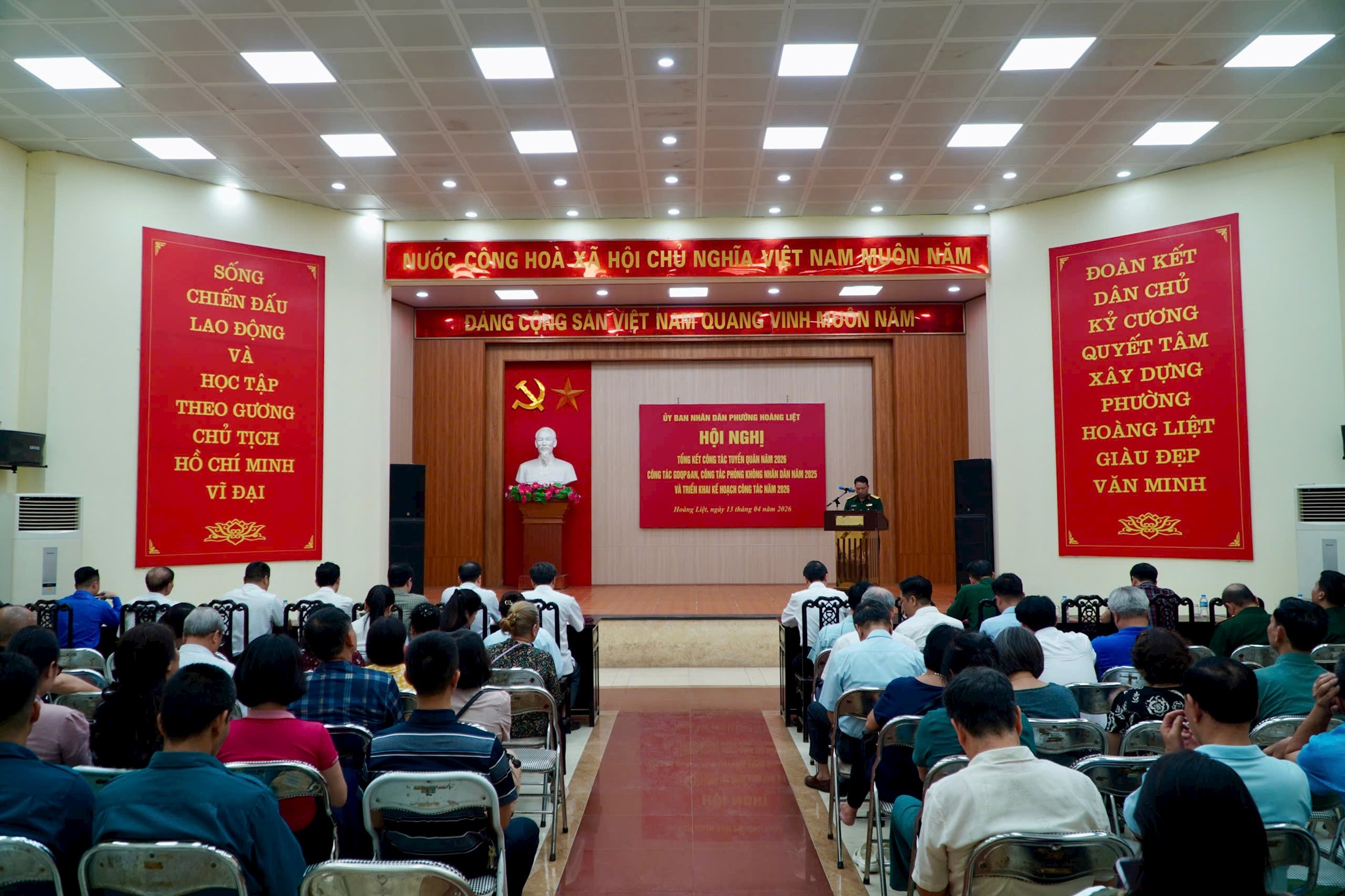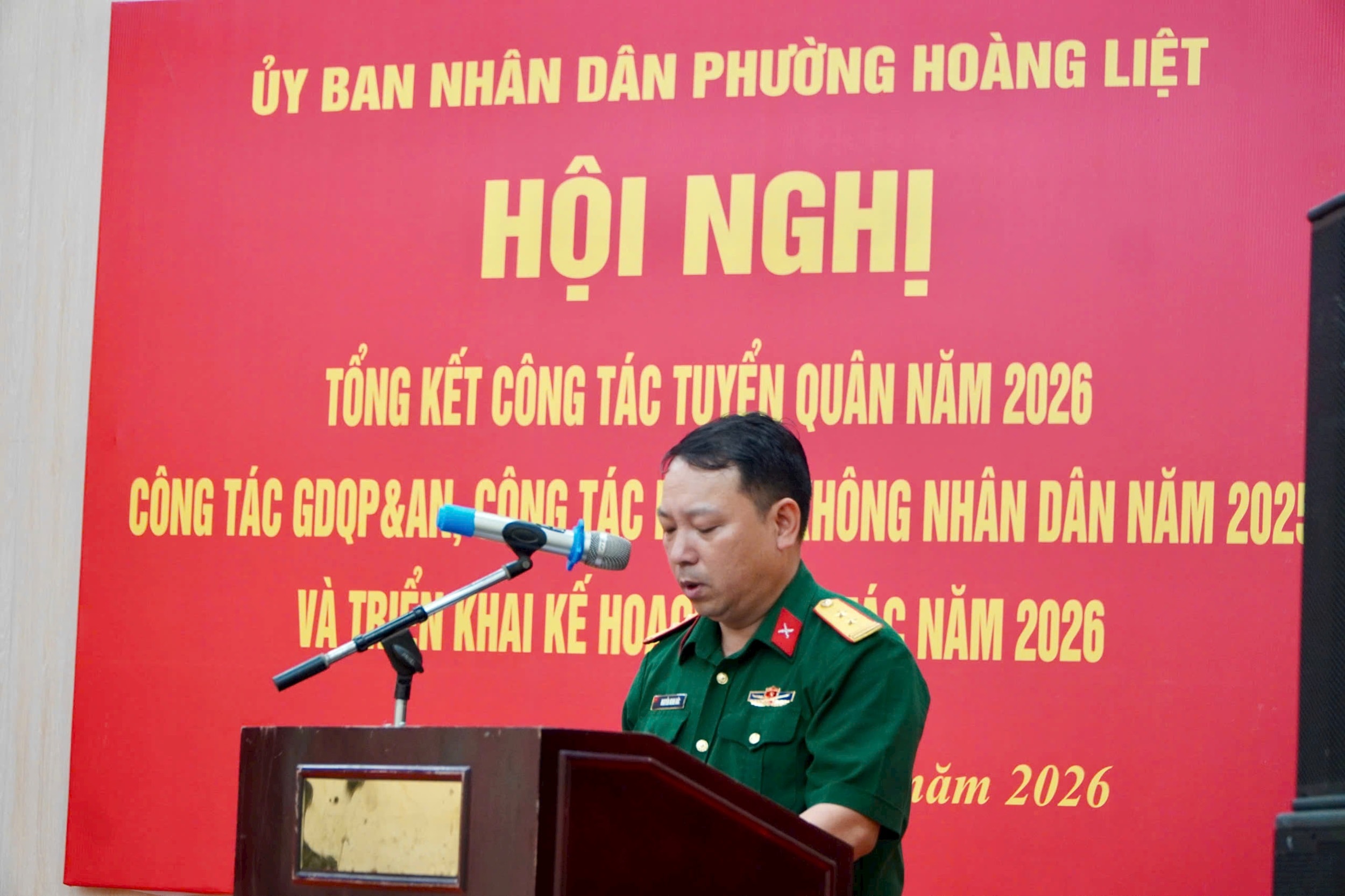 Tại hội nghị, Trung tá Nguyễn Minh Đức – Phó chỉ huy trưởng Ban CHQS phường Hoàng Liệt cho biết: Công tác tuyển chọn và gọi công dân nhập ngũ của phường Hoàng Liệt năm 2026 đã được triển khai đồng bộ, bài bản, thực hiện dân chủ, công khai, đúng luật.