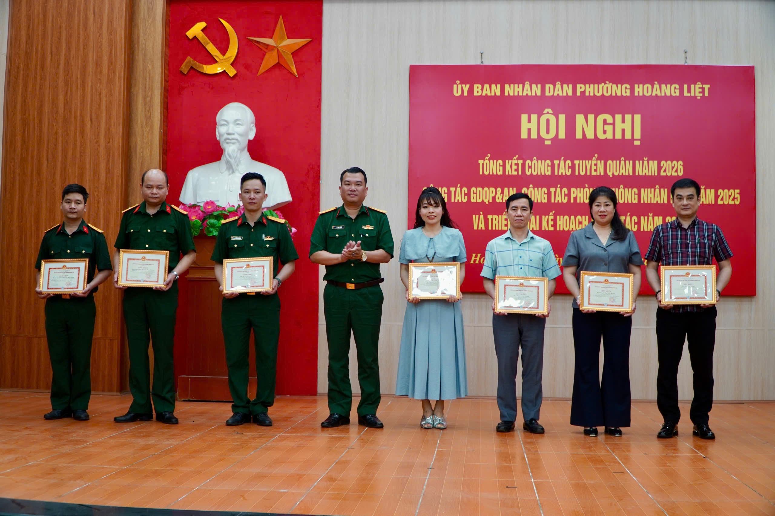Các tập thể, cá nhân được khen thưởng vì đã có thành tích xuất sắc trong nhiệm vụ tuyển quân 2026. Ảnh: Tiến Đạt.