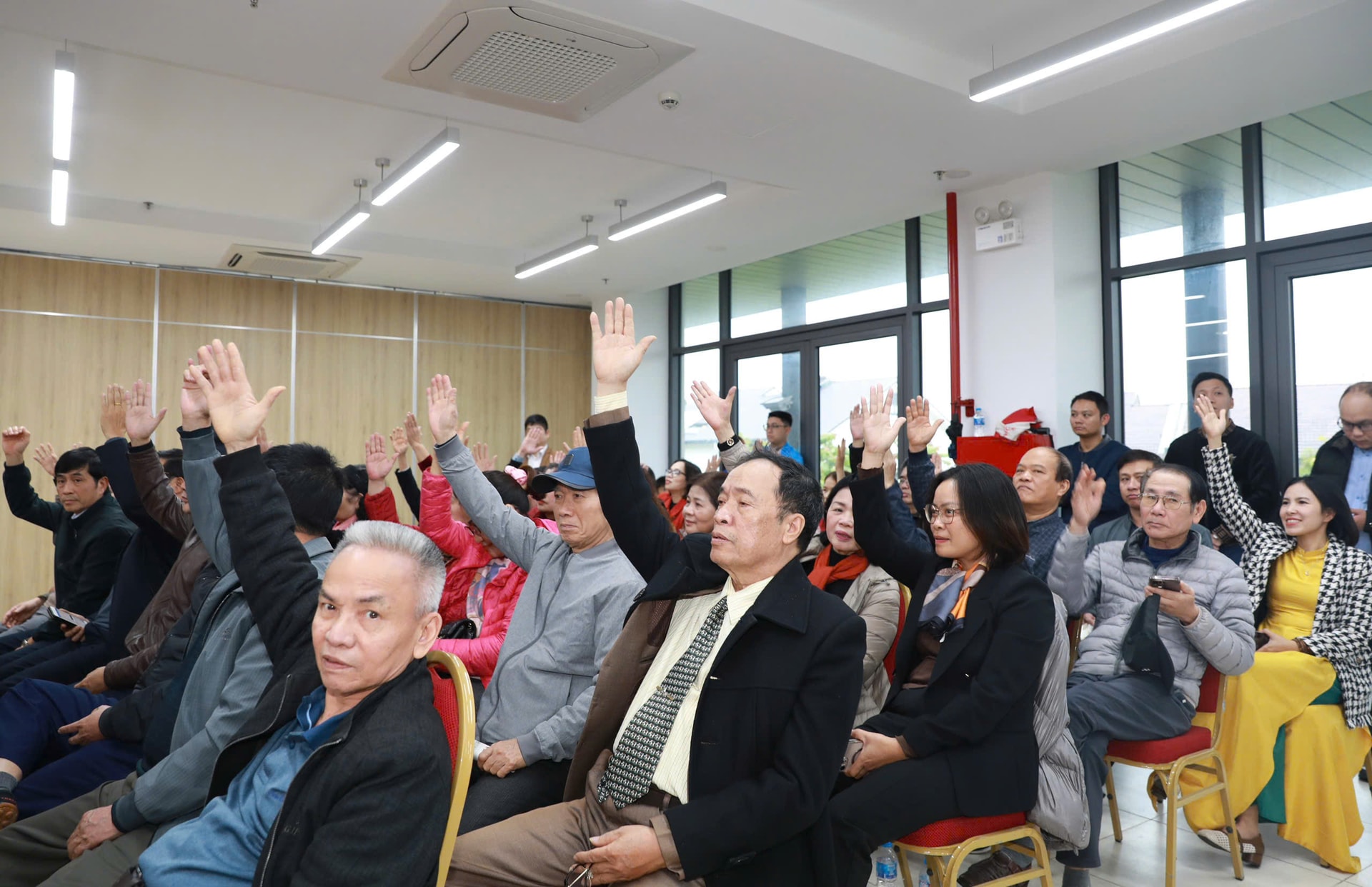 100% cử tri tham dự đã biểu quyết nhất trí đối với 2 đồng chí được giới thiệu ứng cử. Ảnh: PV