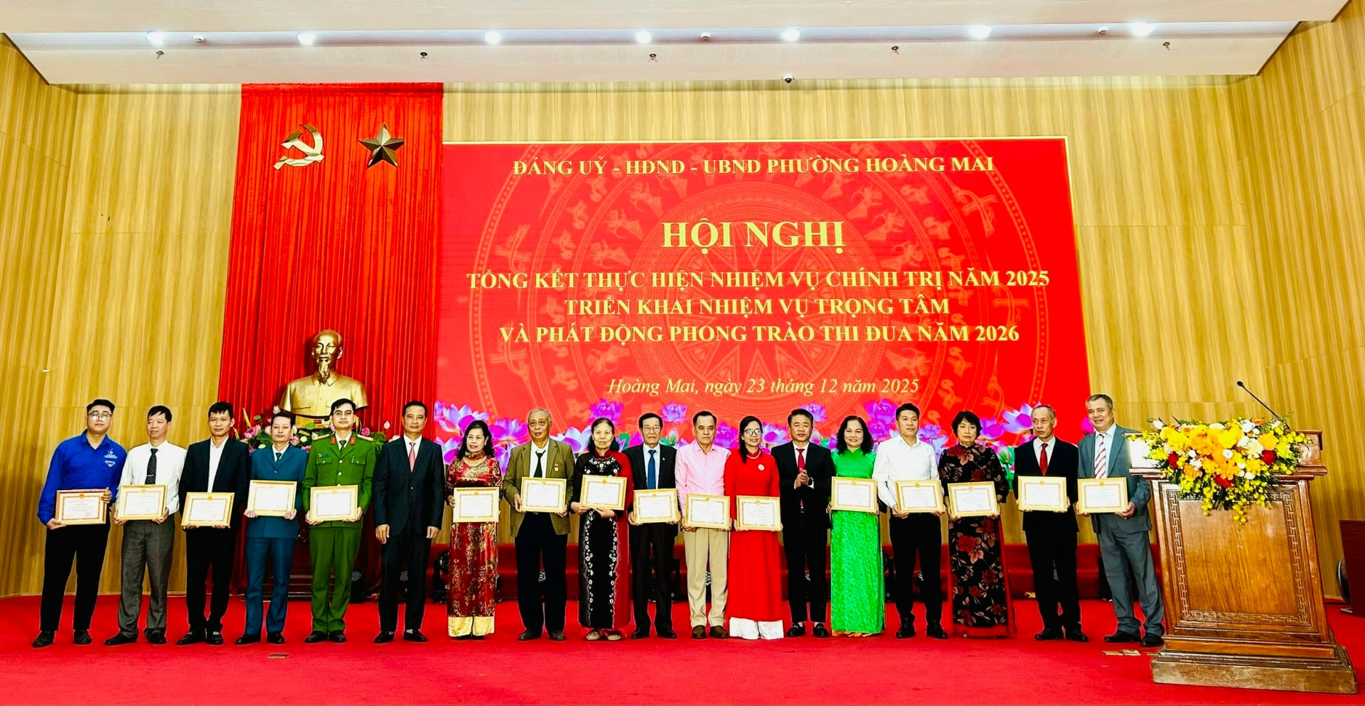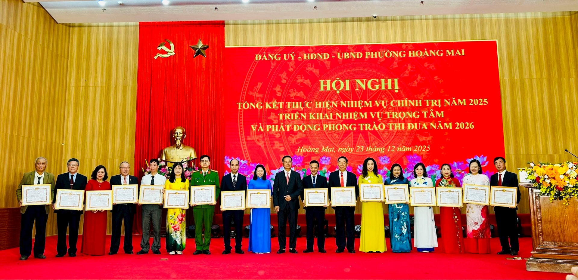 Dịp này, Ban Thường vụ Đảng ủy phường Hoàng Mai đã biểu dương, khen thưởng nhiều tập thể, cá nhân có thành tích xuất sắc trong năm 2025.