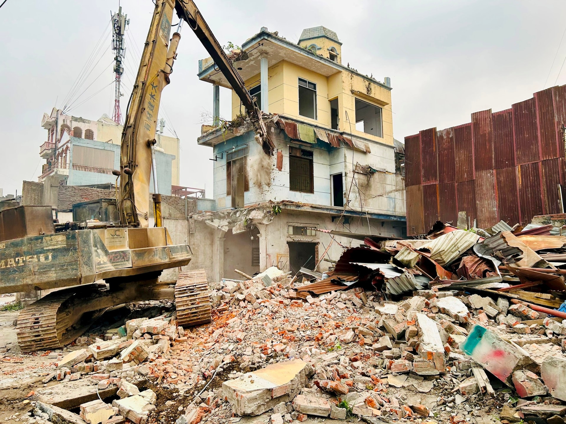 Máy cẩu phá dỡ các công trình để sớm có mặt bằng sạch. Ảnh: Trần Oanh.