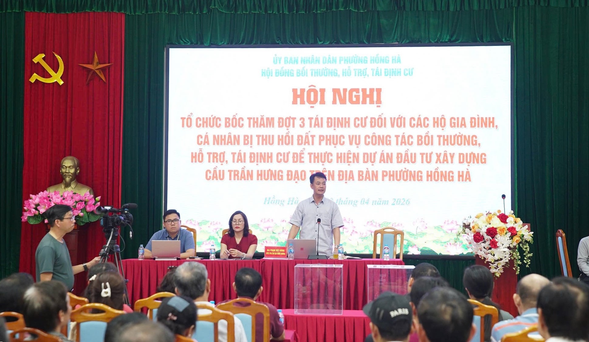 Để đảm bảo tính minh bạch và đồng thuận, UBND phường Hồng Hà đã tổ chức 3 hội nghị tiếp thu ý kiến của nhân dân về phương án bồi thường, hỗ trợ và tái định cư thực hiện dự án cho toàn bộ 334 trường hợp.