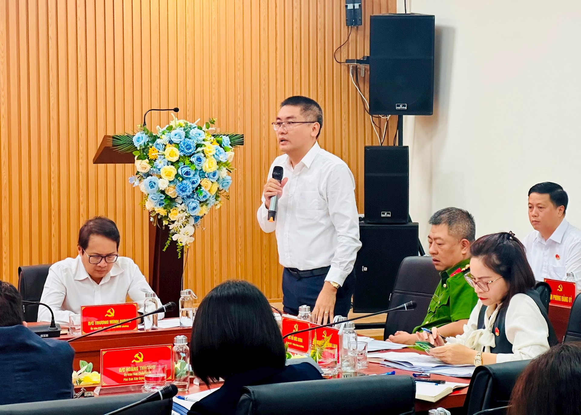 Phó Chủ tịch UBND phường Kim Liên Trần Hoàng nêu ý kiến tại hội nghị. Ảnh: Bảo Lâm