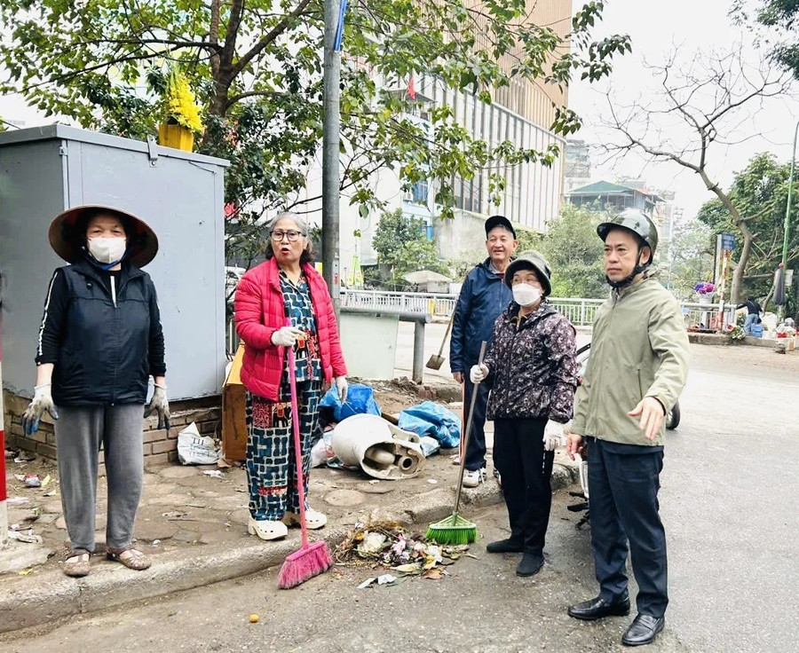 Lãnh đạo phường Kim Liên trực tiếp chỉ đạo công tác đảm bảo vệ sinh môi trường trên địa bàn.