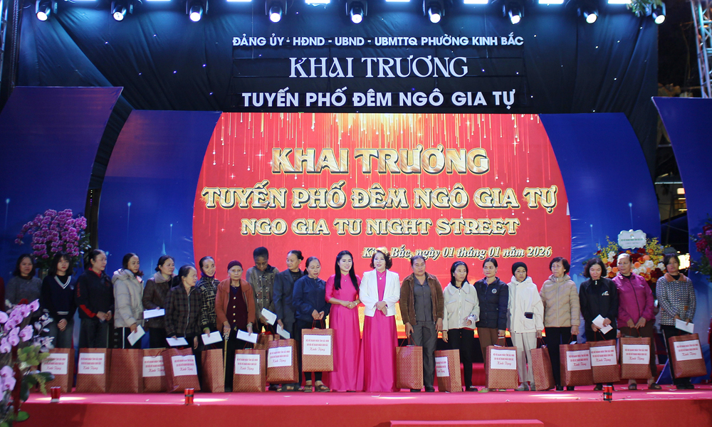 Tại chương trình, các đồng chí lãnh đạo cùng các đại biểu đã bấm nút thực hiện nghi thức khai trương tuyến phố đêm Ngô Gia Tự. Ngoài ra, Chi Hội nữ doanh nhân Kinh Bắc trao tặng những phần quà ý nghĩa dành cho những phụ nữ có hoàn cảnh khó khăn trên địa bàn phường Kinh Bắc.