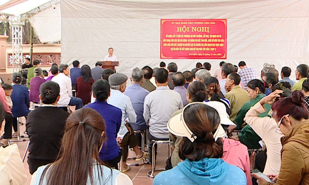 UBND phường Kinh Bắc đối thoại với các hộ dân khu phố Hữu Chấp về phương án bồi thường dự án Khu đô thị mới phía Tây Bắc (khu 1).