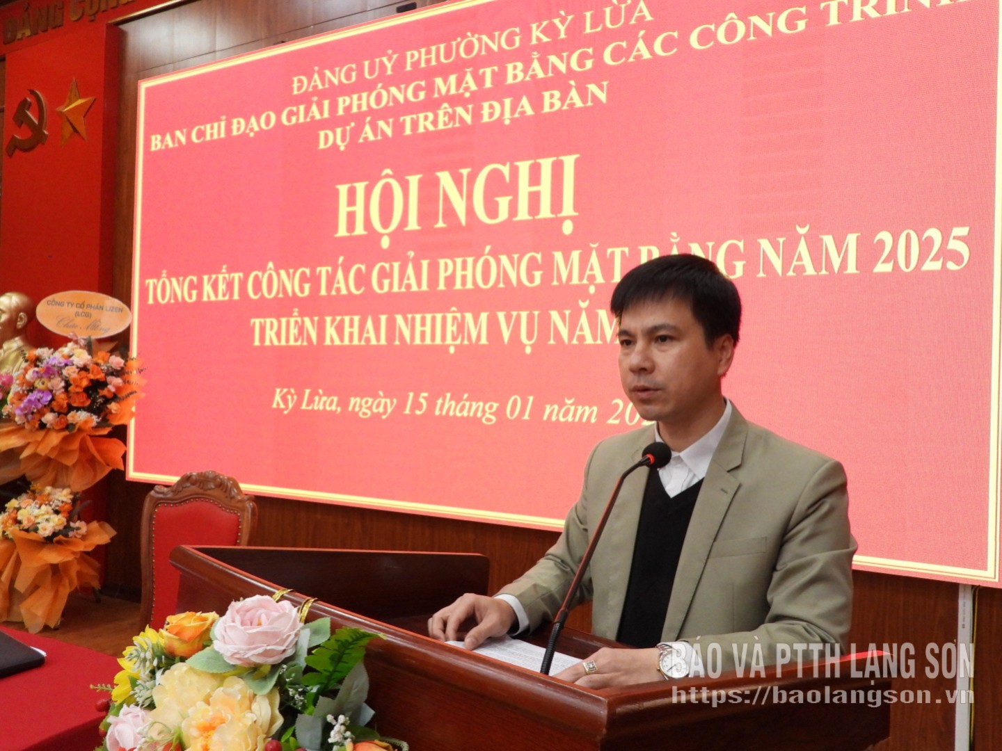 Về nhiệm vụ trọng tâm năm 2025, phường Kỳ Lừa đã đề ra các nhiệm vụ trọng tâm cần tập trung lãnh đạo, chỉ đạo thực hiện công tác giải phóng mặt bằng các dự án như: Tiếp tục nâng cao vai trò điều hành, điều phối trong công tác giải phóng mặt bằng; xử lý dứt điểm các dự án tồn đọng kéo dài; xây dựng kế hoạch giải phóng mặt bằng chi tiết từng dự án, giao việc rõ người rõ kết quả; tăng cường công tác phối hợp với các cơ quan đơn vị tháo gỡ khó khăn vướng mắc phát sinh; đẩy mạnh giải phóng mặt bằng, xây dựng khu tái định cư; tăng cường đối thoại giải quyết đơn thư theo quy định pháp luật, hạn chế phát sinh khiếu kiện do công tác giải phóng mặt bằng...