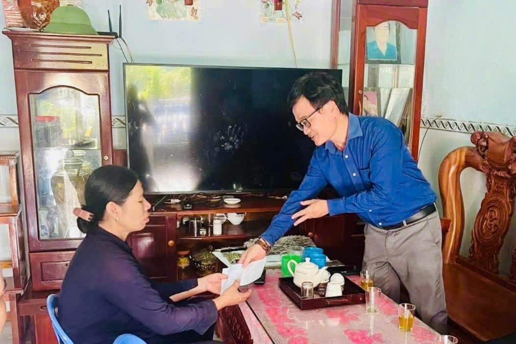 Ông Trần Thế Hùng, Phó Chủ tịch UBND phường La Gi thăm gia đình ông Nguyễn Thế Tình