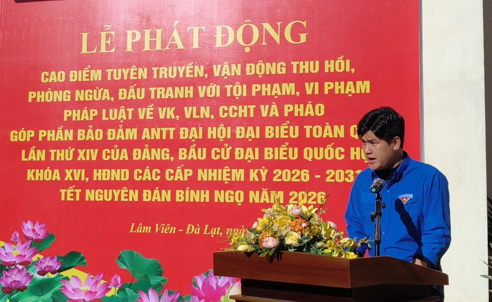 Phát biểu hưởng ứng Lễ phát động, Bí thư Chi đoàn Nghệ Tĩnh 5, phường Lâm Viên - Đà Lạt Võ Trung Kiên nhấn mạnh: Với vai trò là lực lượng trẻ, xung kích, đoàn viên thanh niên phường Lâm Viên - Đà Lạt cam kết gương mẫu chấp hành pháp luật; nói không với việc tàng trữ, mua bán, chế tạo, sử dụng trái phép vũ khí, vật liệu nổ, công cụ hỗ trợ và pháo.