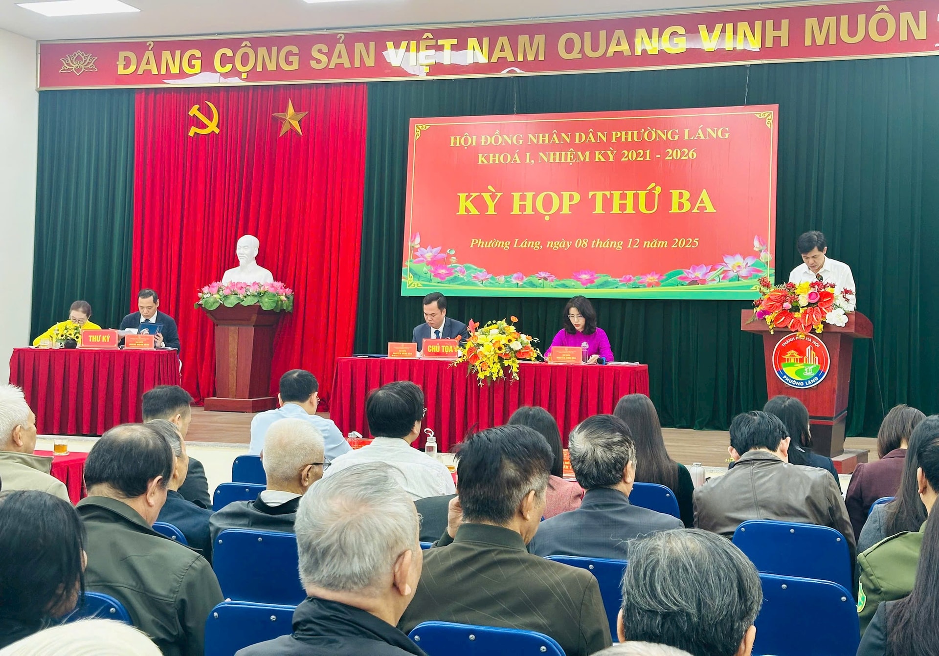 Tại kỳ họp, HĐND phường đã thông qua 5 nghị quyết quan trọng gồm: Nghị quyết về ban hành Quy chế làm việc của HĐND phường Láng; Nghị quyết về nhiệm vụ kinh tế - xã hội, an ninh quốc phòng phường Láng năm 2026; Nghị quyết về dự toán và phân bổ dự toán ngân sách phường Láng năm 2026; Nghị quyết về Kế hoạch đầu tư công năm 2026 phường Láng; Nghị quyết về phân bổ chỉ tiêu biên chế và lao động hợp đồng các cơ quan chuyên môn, đơn vị sự nghiệp công lập thuộc UBND phường năm 2026.
