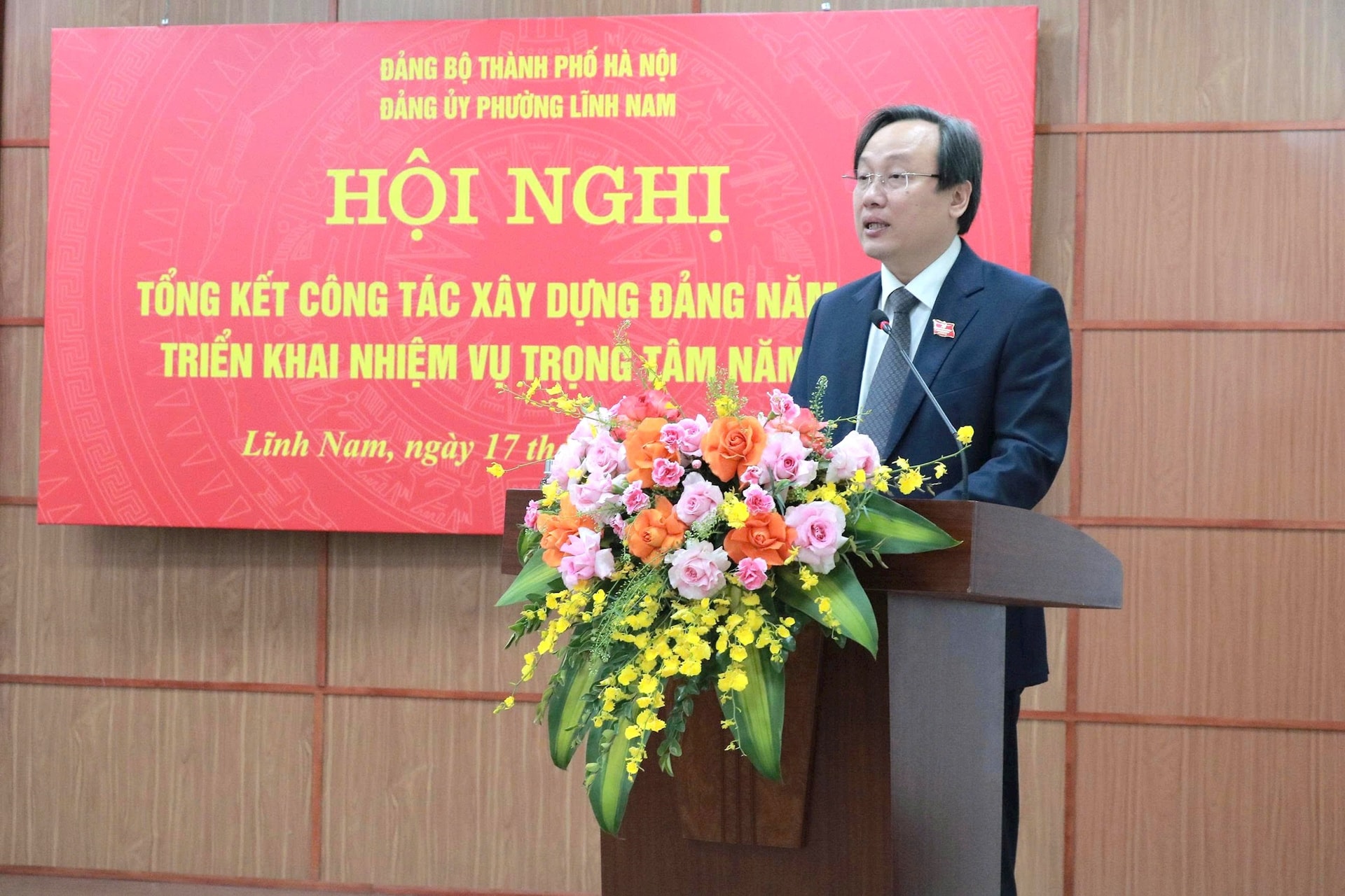 Phát biểu tại hội nghị, Bí thư Đảng ủy, Chủ tịch HĐND phường Lĩnh Nam Đỗ Thanh Tùng khẳng định, năm 2026, Đảng ủy phường tiếp tục đổi mới phương thức lãnh đạo, chỉ đạo, điều hành và công tác dự báo, nắm bắt tình hình cơ sở.