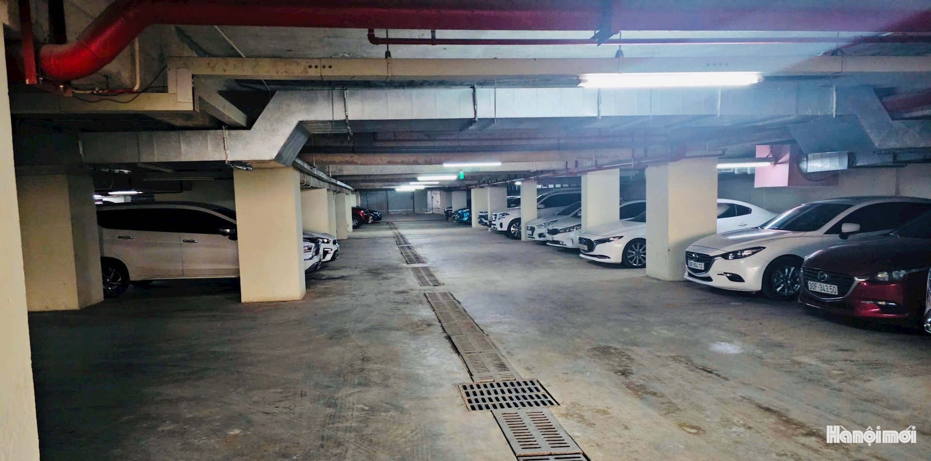 Tòa nhà chưa được đưa vào sử dụng nhưng đã có dấu hiệu trông giữ xe dưới tầng hầm. Ảnh: PV