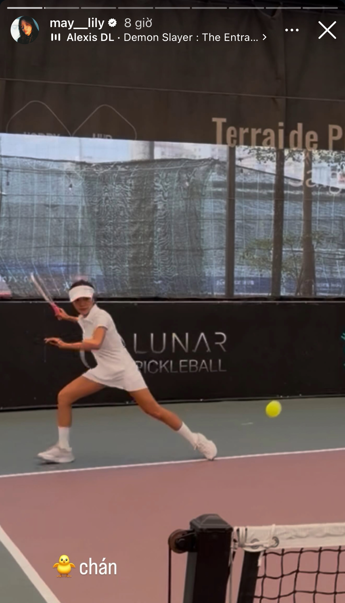 Tại thời điểm sự kiện của WOKEUP diễn ra, Phương Ly tiếp tục đăng ảnh trên sân pickleball (Ảnh: Instagam nhân vật)