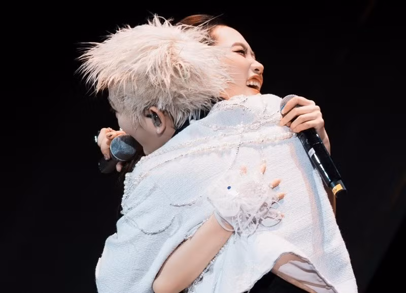 “Cuối cùng sau 13 năm, hai anh em đã có dịp đứng chung trên một sân khấu. Cảm xúc thật bồi hồi, xúc động và cả tự hào về hành trình mà cả hai đã trải qua”, cô bày tỏ.