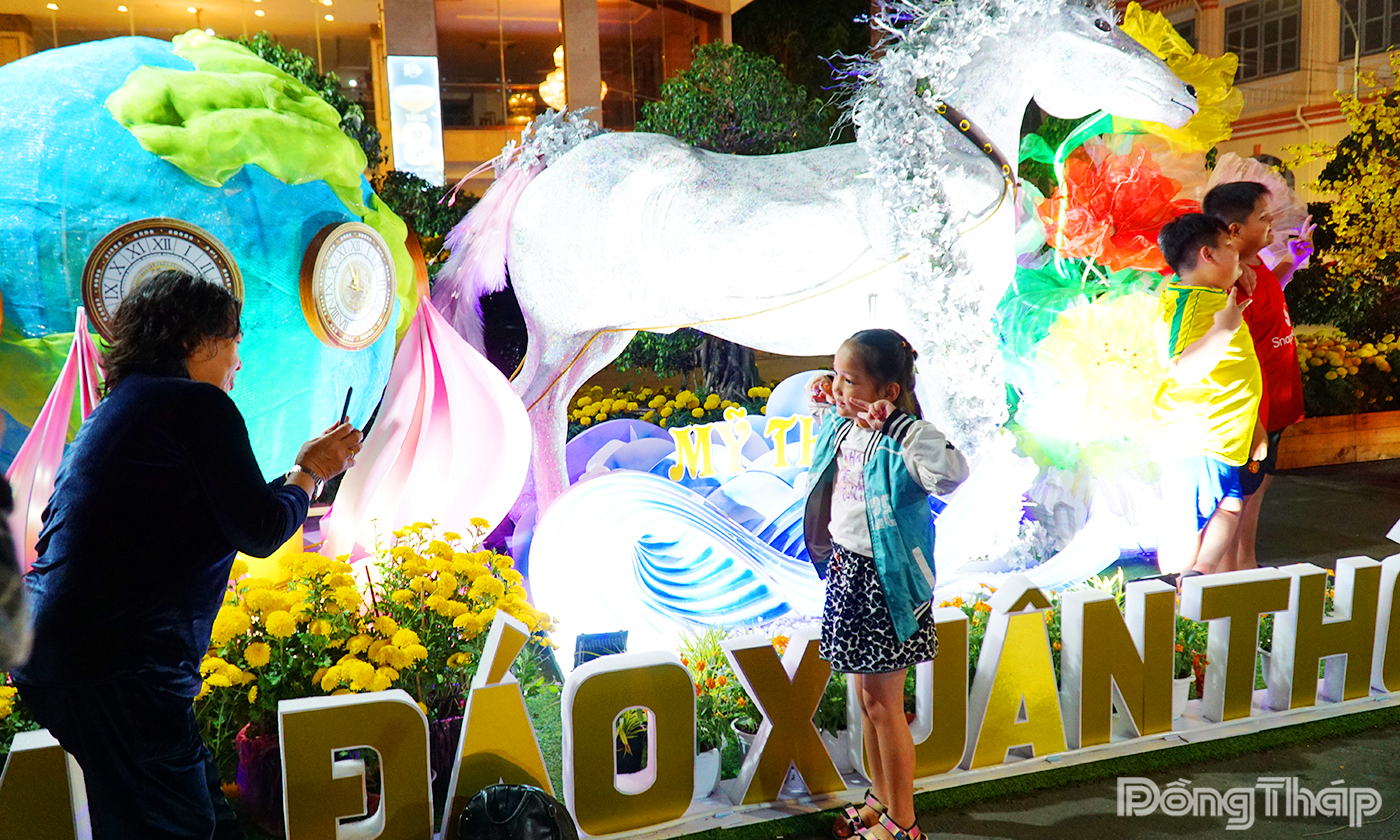 Điểm nhấn năm nay là Đường hoa xuân Mỹ Tho, tổ chức tại Công viên Lạc Hồng (đường 30-4) được trang trí các cụm tiểu cảnh với linh vật ngựa (biểu tượng của năm Bính Ngọ) được thiết kế sinh động kết hợp với hoa tươi và nông sản đặc trưng trong tỉnh.