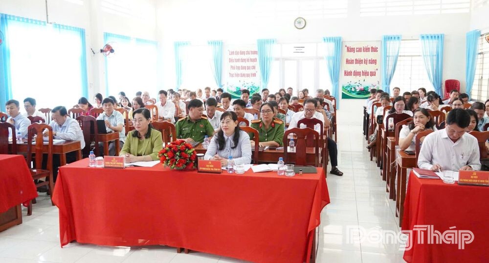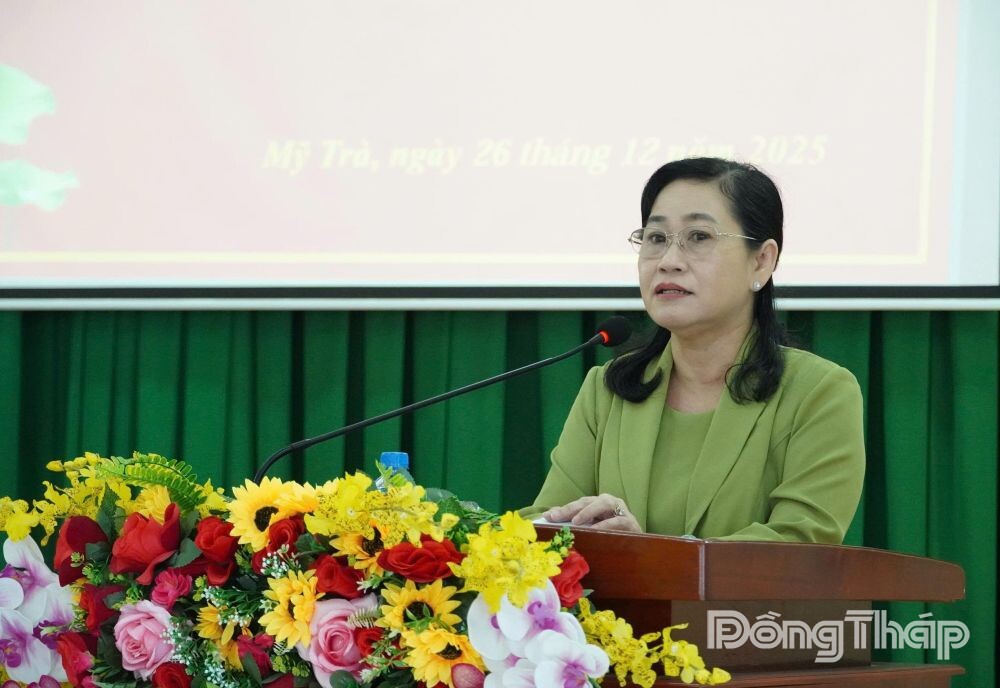 Phát biểu chỉ đạo hội nghị, đồng chí Châu Thị Mỹ Phương ghi nhận và biểu dương những nỗ lực, kết quả mà toàn Đảng bộ, chính quyền và Nhân dân phường Mỹ Trà đã đạt được trong năm 2025.