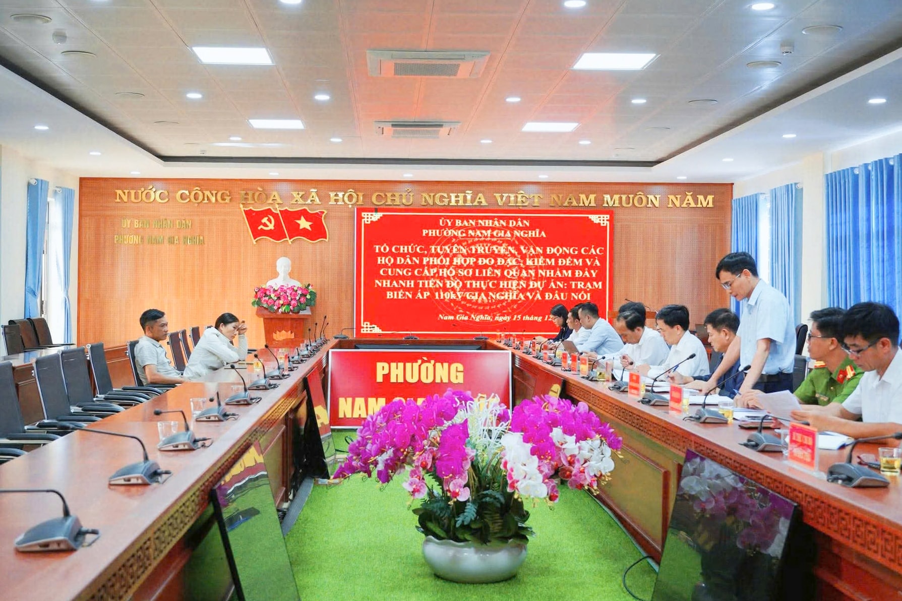 UBND phường Nam Gia Nghĩa tổ chức tuyên truyền, vận động các hộ dân phối hợp đo đạc, kiểm đếm, cung cấp hồ sơ liên quan nhằm đẩy nhanh tiến độ thực hiện Dự án Trạm biến áp 110kV Gia Nghĩa